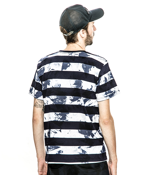| spec | 首フライスは2本針縫製したベーシックでスマートなシルエットのTシャツ。左脇にはブランド名であるACANTHUS(地中海地方産ハアザミ 属植物)の形をモチーフにしたアイコンを刺繍している。手作業によるムラ染め絞り染めを施している為、1点1点表情の異なる特別な1枚となる。 |