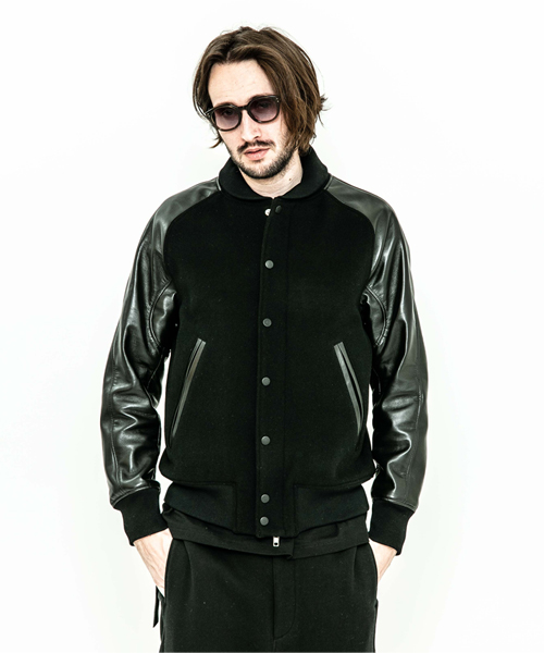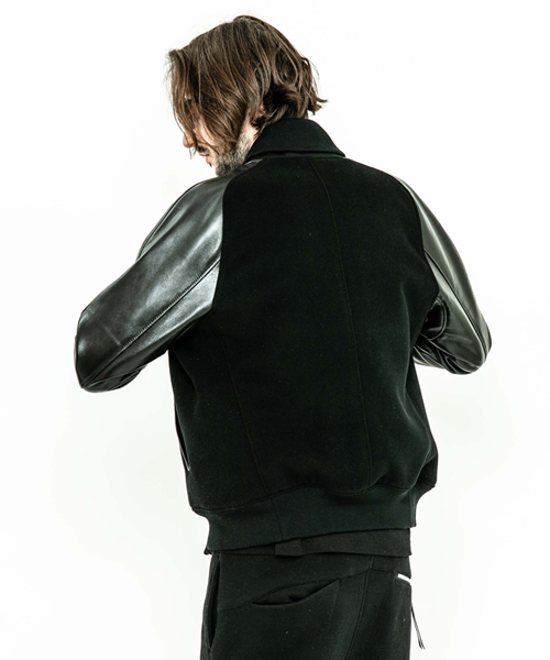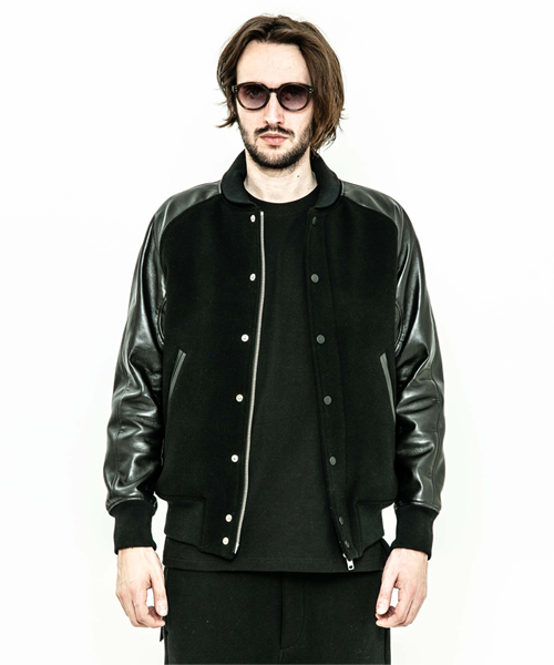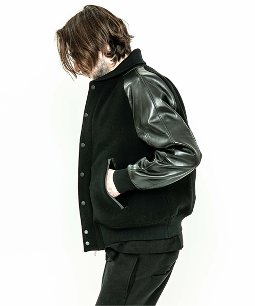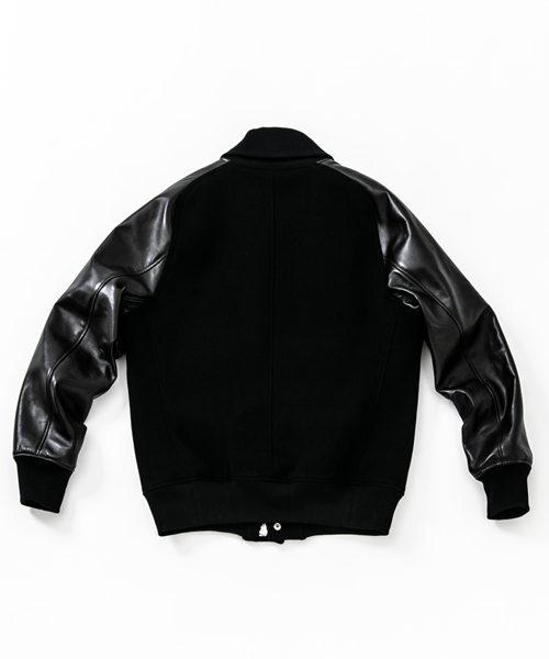 | spec | スペシャル素材を使用したスタジアムジャケット。シルケットコットン100%のリブをオリジナルで編み立て。ファスナーには高品質なYKK EXCELLA製ファスナーを使用。ドット釦は同色系のレザーを包んだオリジナルドット釦を使用。裏地には通常よりも滑らかさの高い特別なキュプラ生地を使用。見頃にはキルティング加工、袖は中綿挟みで保温性を確保している。袋布には温かみのある起毛コットンを使用。素材、縫製、加工あらゆる面に技術と拘りを詰め込んだ1着。 |