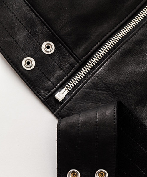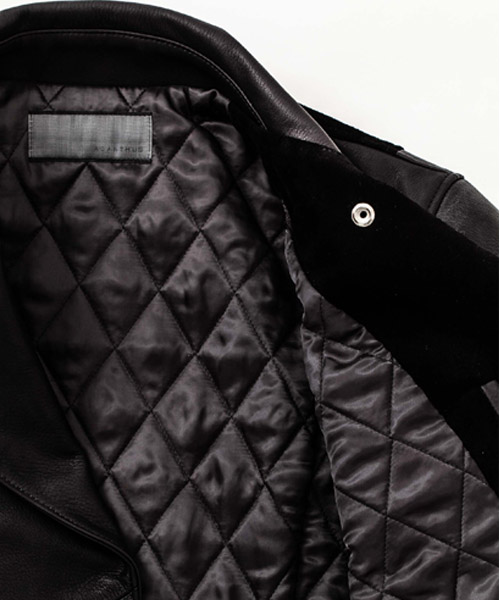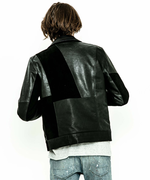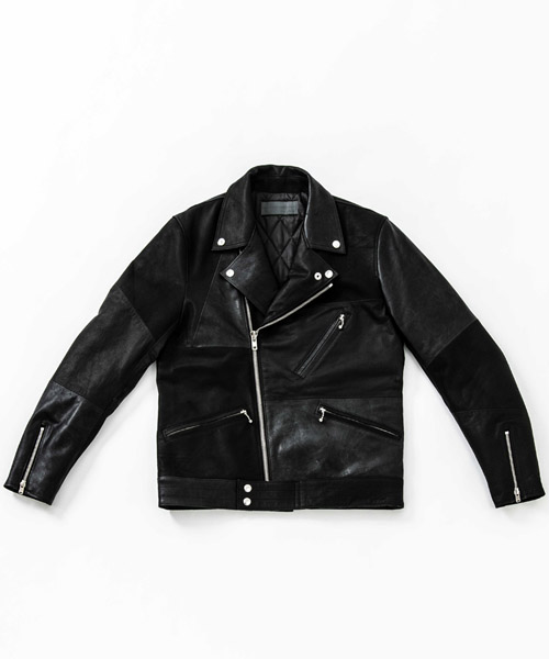spec | 英国モーターサイクルのライダースジャケットに見られるディテールを採用。ファスナーには高品質なYKK EXCELLA製ファスナーを使用。裏地には滑らかな着心地のキュプラ生地を使用。見頃にはキルティング加工、袖は中綿挟みで保温性を確保している。袋布には温かみのある起毛コットンを使用。3種類のレザー素材を贅沢にパッチワーク切り替えにて仕上げている。 |