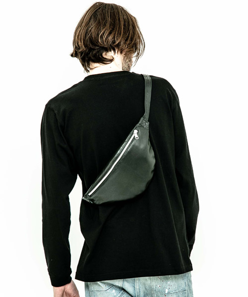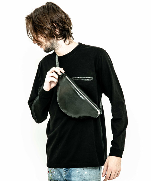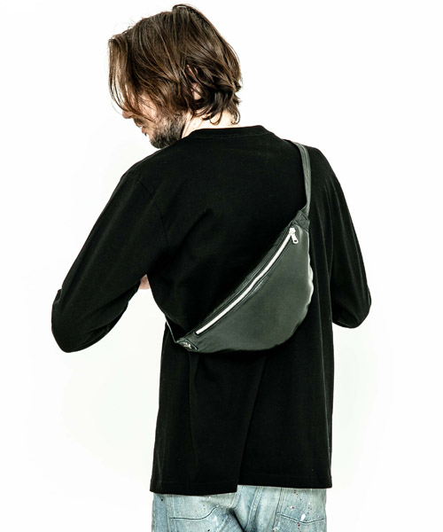 spec | 上質なオイルポニーレザーを使用したレザーボディバッグ。ファスナーには高品質なEXCELLA製ファスナーを使用。ショルダー部分はDカンにて長さを調節可能。脇にはブランド名であるACANTHUS(地中海地方産ハアザミ 属植物)の形をモチーフにしたアイコン刺繍を施したレザーパッチを配置。財布やモバイル等、外出時に必要な最低限の荷物が入る万能サイズのBAG。 |