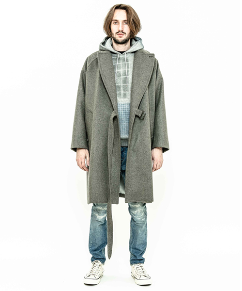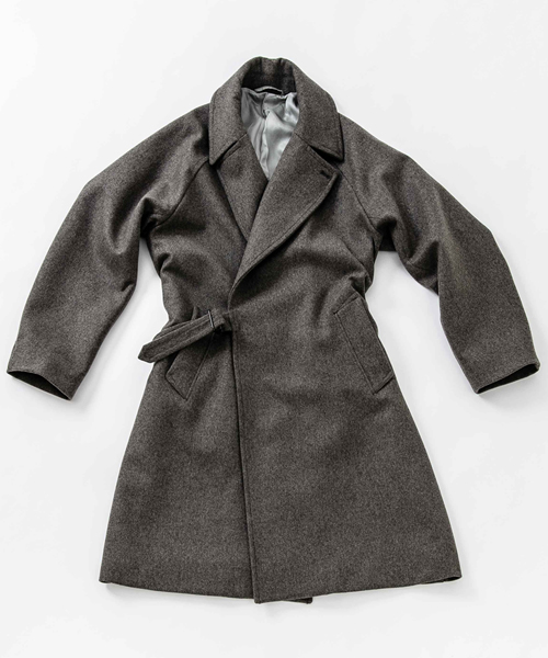 spec | その名の通り、"TIE"="紐"で"LOCK"="留める"仕様のコート。トレンチコートの原型とも言われるほど歴史は古く、フロントから伸びるベルトを内側から後ろを通しバックルで留めつけるシンプルな機構ながらざっくりしたサイズ感と上質な素材から"今"を捉え、汎用性の高い一着。すっきりとしたデザインとは裏腹に内側には機能的なポケットを両サイドに配置。 |