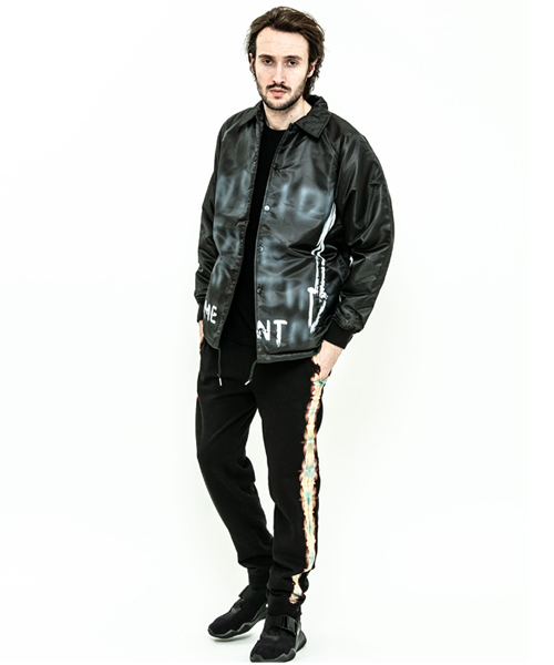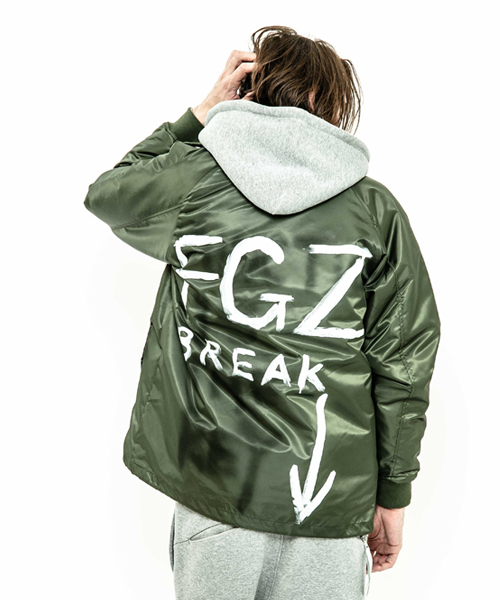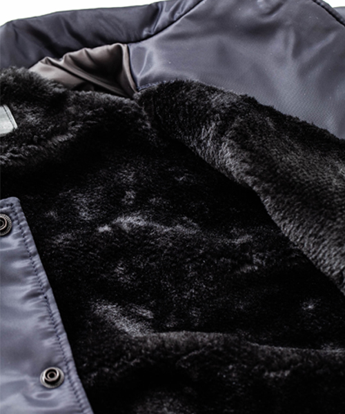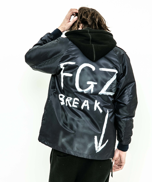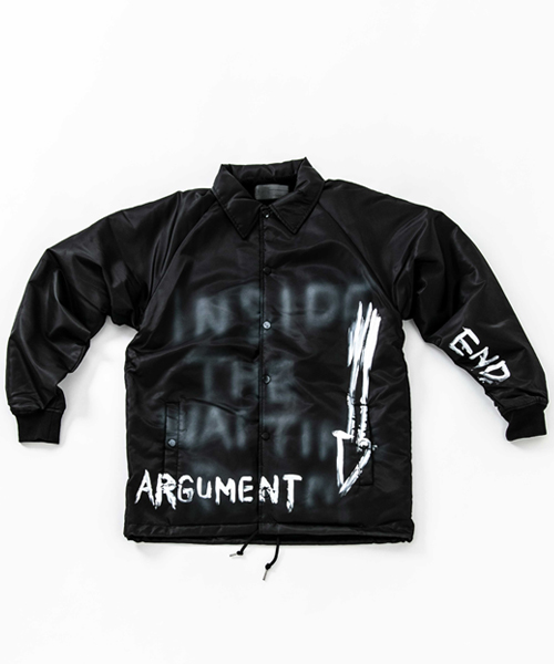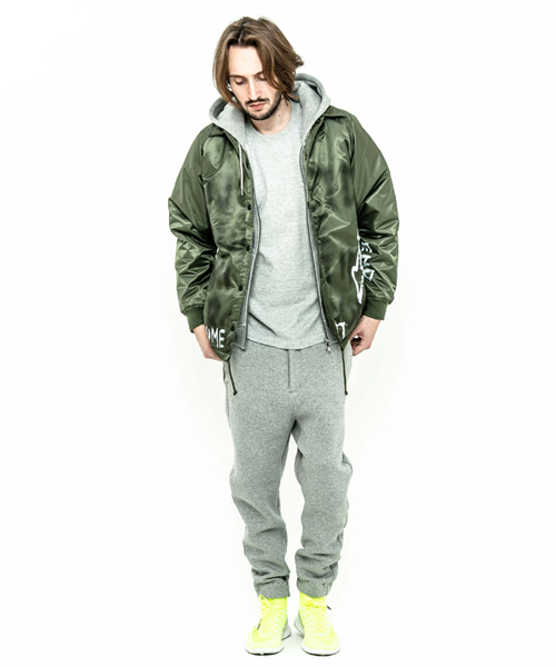 spec | 身頃裏には保温性の高い厚手ボア生地、袖には中綿を挟んだポリエステル生地を使用したコーチJKT。ペインターによるエアスプレーと手書きを用いたグラフィックを1点1点施している。量産プリントには表現できない、ハンドペイントによる特別な味わいや表情を楽しめる1着。 |