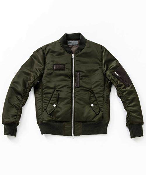 spec | 今期はサイズ感をワイズのみワンサイズ大きくアップデート。1950年代初頭に、B-15型フライトジャケットの後継としてアメリカ空軍によって開発されたMA-1型フライトジャケットをベースに作製。身頃裏、袋布には起毛生地、袖には肌滑りの良いキュプラ素材を使用。ファスナーには軽量感、メッキの高級感を持つYKK社のMATALUXEを使用。全体に厚めの中綿を挟み込む事によって保温性を高めている。フロント、左袖PKにはラムレザーを配置し、パッカリング縫製を施した袖仕様を採用しMA-1のディティールを再現。 |