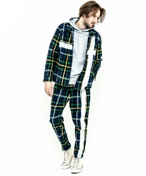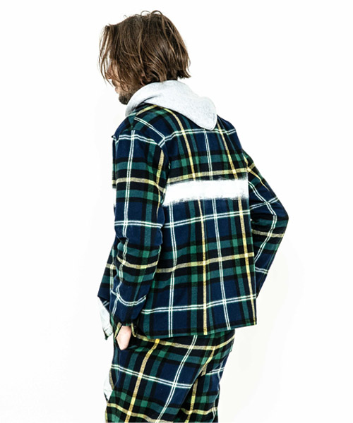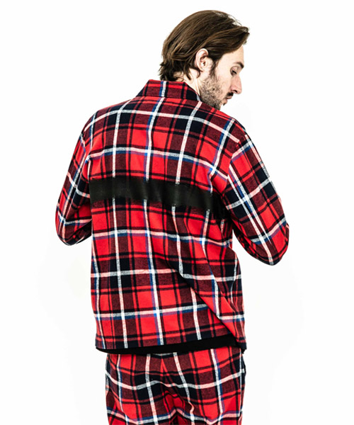 | material | 片面だけ毛羽立ちされた丈夫な綿の織物であるコットンフランネル地を使用。やや大ぶりのチェック柄で構成され、見た目よりも軽く着心地は抜群。 |