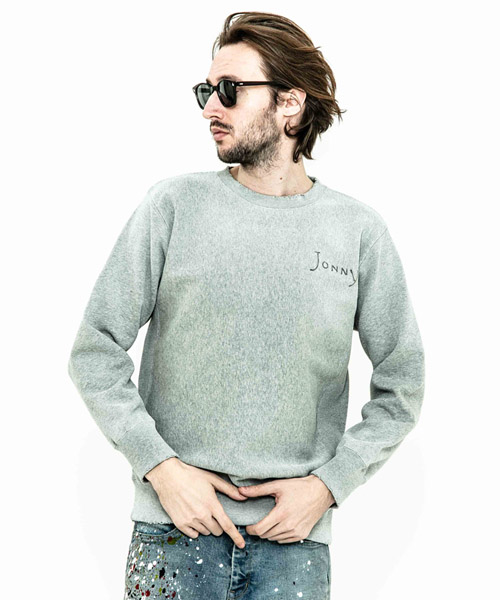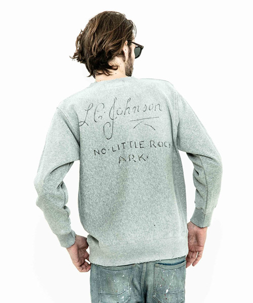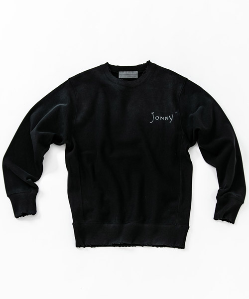 度詰裏毛起毛を使用したプルオーバースウェット。実際に当時兵士が描いたペイントをイメージに、職人による再現性の高い手書きにて表現。全体的にvintage加工、エッジにはリアルなダメージ加工を追加。