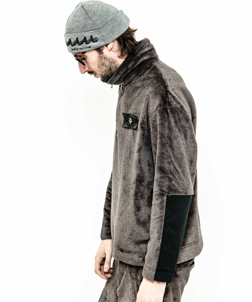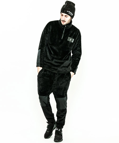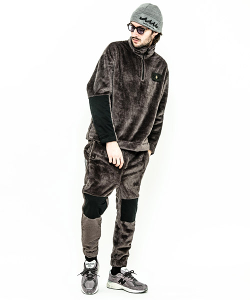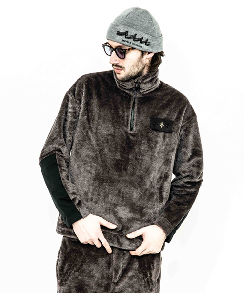 | material | 伸縮性抜群、毛足のあるベアフリース素材。ポリエステル100%のナチュラルなウォーム感で高い保温性を誇る。特筆すべき触り心地が全てを包み込む素材感。 |