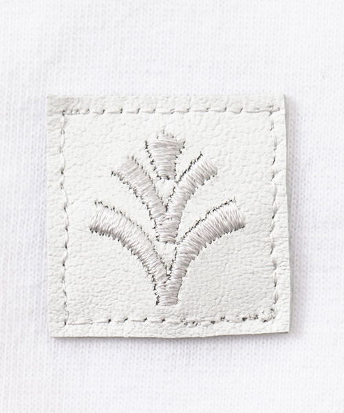 spec | 首フライスは2本針縫製、丸胴に編み立てた身頃を使用したベーシックでスマートなシルエットのTシャツ。左胸にはブランド名であるACANTHUS(地中海地方産ハアザミ 属植物)の形をモチーフにしたアイコンを生地同色にて刺繍したパッチを配置。 |