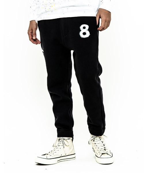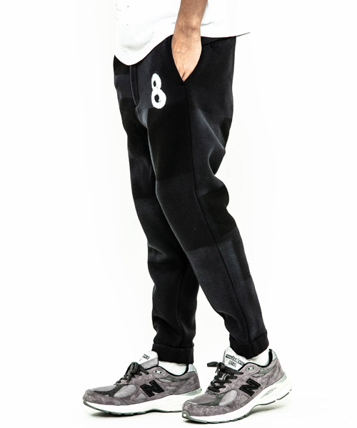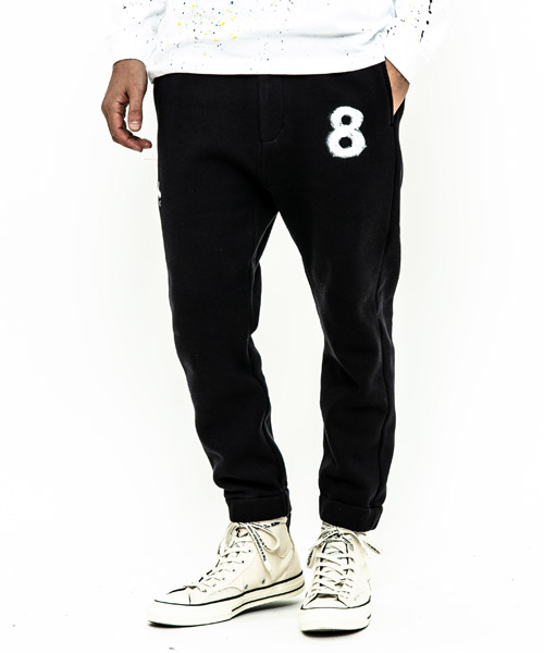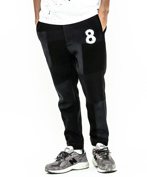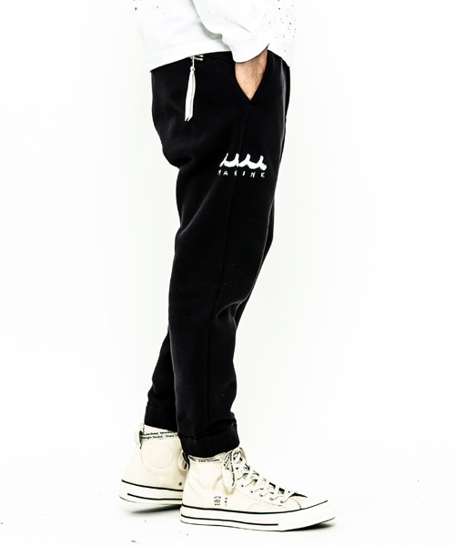 spec | mutaとのコラボレーションコレクション。 股上深めのセミサルエルシルエットのイージーPT。後PKファスナーには軽量感、メッキの高級感を持つYKK社のMATALUXEを使用。引き手にレザーテープを追加。ウエストゴム仕様でスピンドルにて調節が可能。PW品番は特殊な手法によるプリントにて、1点1点特別なパッチワーク柄を表現している。更にAcanthus×mutaコラボアイテムにはペインターによるハンドペイントで"8"、"WAVE"ロゴを描き、mutaのキーカラーであるネイビーと白のコントラストは秀逸。 |