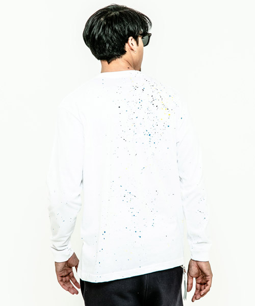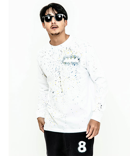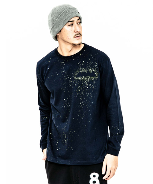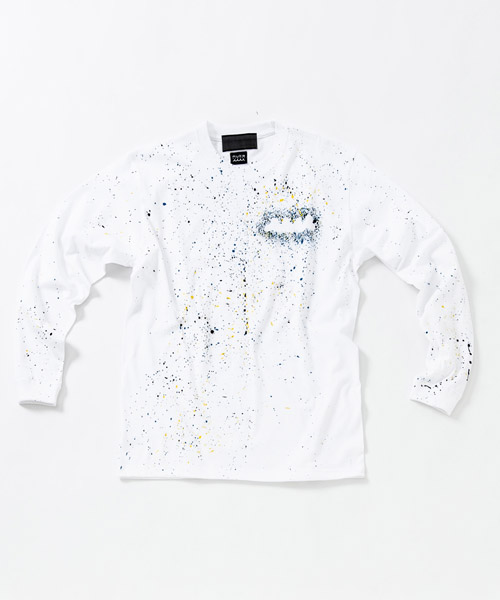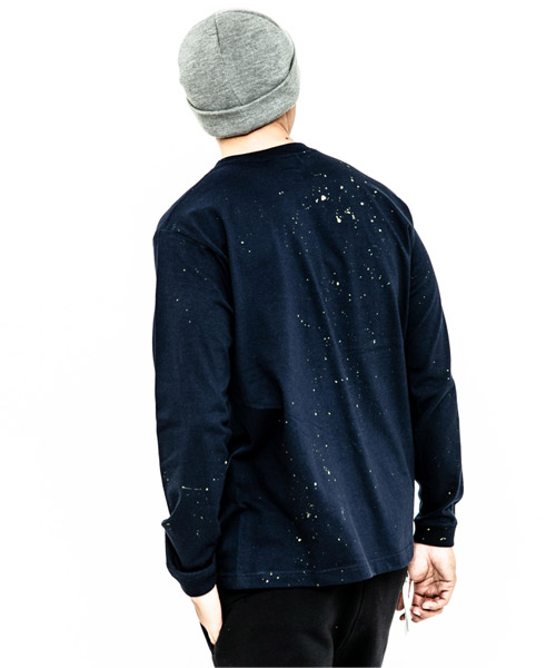 spec | mutaとのコラボレーションコレクション。 降り注ぐようなスプラッシュペイントにてmutaロゴを表現。手作業にて施している為、1点1点表情の異なるスペシャルな1枚となる。首フライスは2本針縫製、丸胴に編み立てた身頃を使用したベーシックでスマートなシルエットのL/STシャツ。左脇にはブランド名であるACANTHUS(地中海地方産ハアザミ 属植物)の形をモチーフにしたアイコンを生地同色にて刺繍。 |