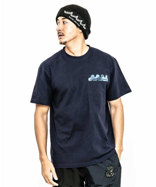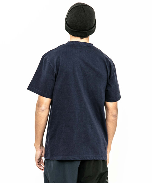spec | mutaとのコラボレーションコレクション。 首フライスは2本針縫製、丸胴に編み立てた身頃を使用したベーシックでスマートなシルエットのTシャツ。胸にはトリミングポケットを配し、有松地方で活動する染め職人によるムラ染めウォッシャブルレザーでトリミングされたmutaのwaveロゴポケットがキャッチー。 |
