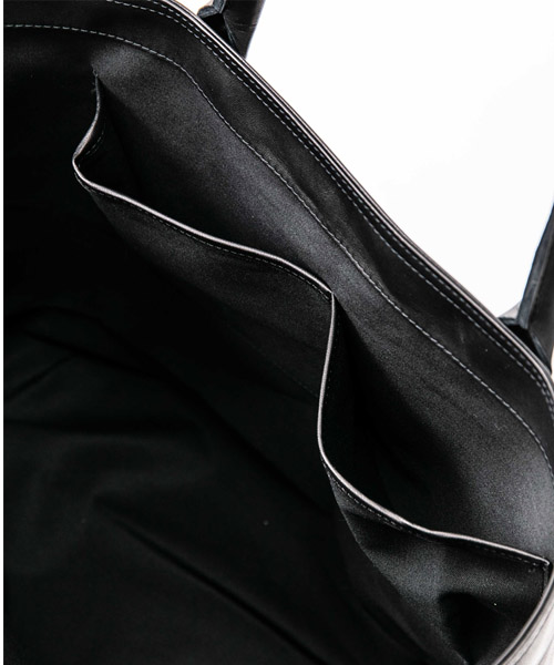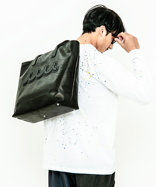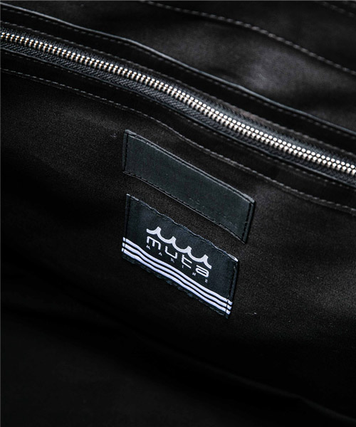 | spec | mutaとのコラボレーションコレクション。 上質なオイルポニーレザーを使用したレザートートバッグ。実用性を兼ねたサイズとライトウェイトが実現する汎用性に熟練の職人が作り込んだ仕上がり。アクセスし易い背面のポケットやファスナー付きの内ポケットも嬉しい仕様。本体にインパクトのあるmutaのwaveロゴを共レザーで製作したワッペンとして配置。 |