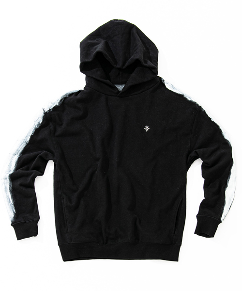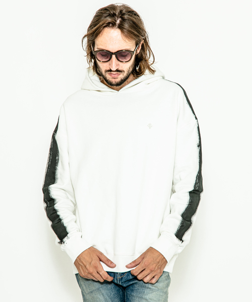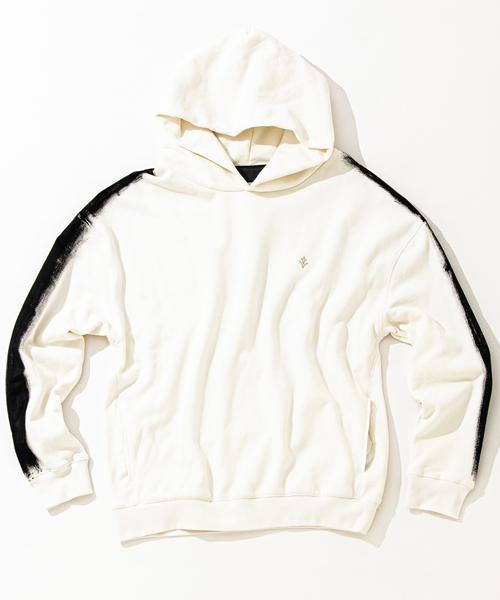 | spec | ドロップショルダーが特徴的でありながら身幅がそこまでオーバースペックではないため、ルーズ過ぎないシルエットでちょうどいい"今"感を体現できる万能スウェットパーカー。単なるロゴに頼らない両袖のハンドラインペイントはインパクトが絶大。胸のAcanthusロゴ刺繍も全体を引き締めるキーポイント。 |