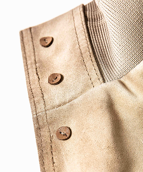 | spec | クラシックなデザインのバルスターJKT。1911年創業のバルスター(Valstar)が1935年に作ったバルスタリーノ(Valstarino)というブルゾンがその起源とされている。またアメリカ軍のA-2、そのさらに前身にあたるA-1ともほぼ同じ形とされているが基本的にはドライバーズJKTである。そのクラシックなモデルを現代的なシルエットにパターン修正。サイドからも手を入れる事のできる切り替えポケットを脇に追加し、実用的に進化させた。リブは滑らかなポリエステル糸を使用した独自で編みたてた変則編みのオリジナルリブを採用。裏地には袖通りの良いキュプラ生地を使用。釦裏にはレザー力ボタンを配置。最終工程にて全体的にエイジングを表現した染め加工を施している。 |