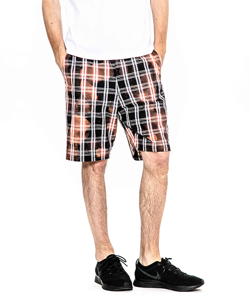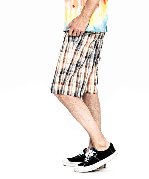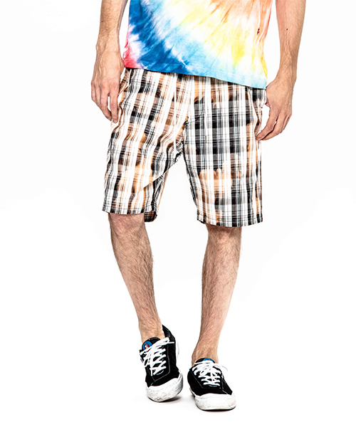 | Product | bleach dye stretch plaid shorts |