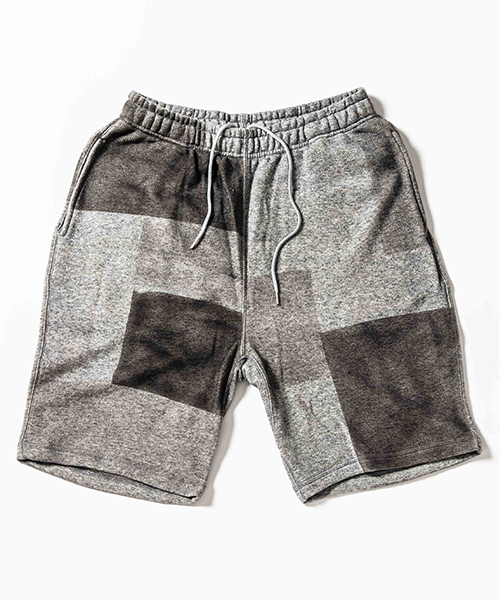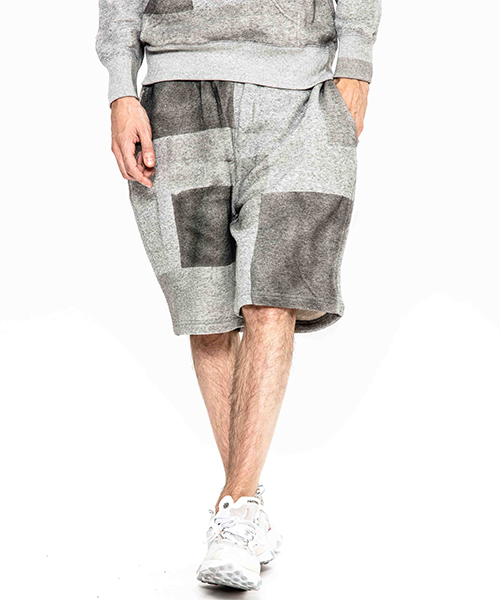 | spec | 縫製後、特殊な手法によるプリントにて、1点1点特別なパッチワーク柄を表現した裏毛ショーツ。柔らかい素材感を生かしたリラックスしたサイズ感。ウエストはゴムとスピンドルにて調節可能。 |