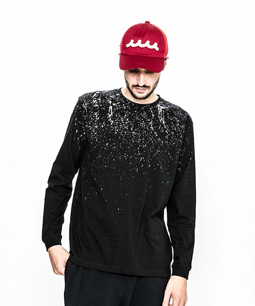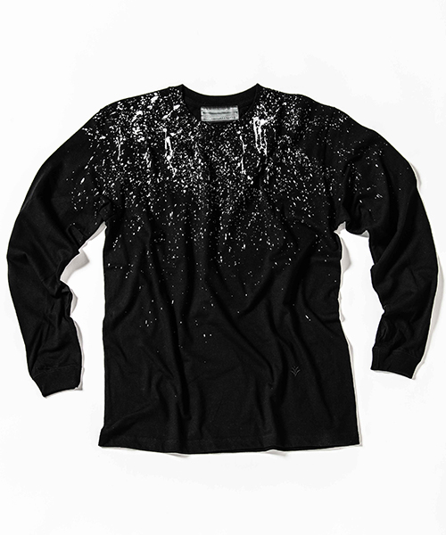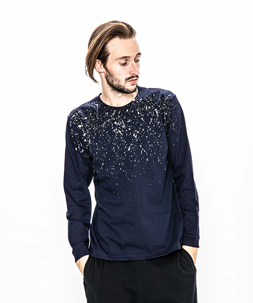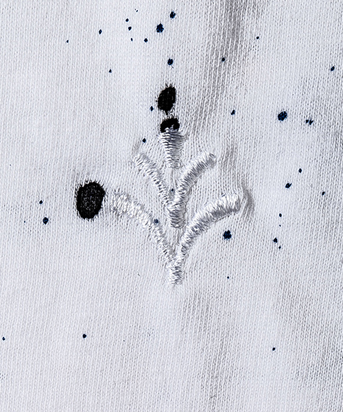 | spec | 首フライスは2本針縫製、丸胴に編み立てた身頃を使用したベーシックでスマートなシルエットのL/S Tシャツ。左脇にはブランド名であるACANTHUS(地中海地方産ハアザミ 属植物)の形をモチーフにしたアイコンを生地同色にて刺繍。首元から降り注ぐようなスプラッシュペイントを手作業にて施している為、1点1点表情の異なる特別な1枚となる。 |