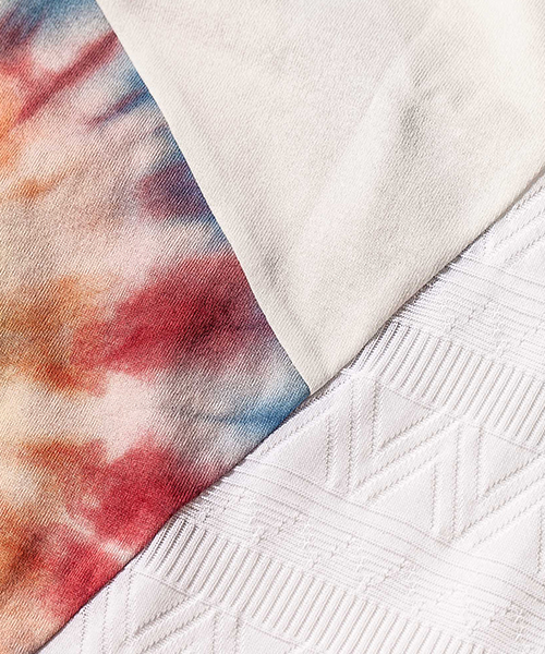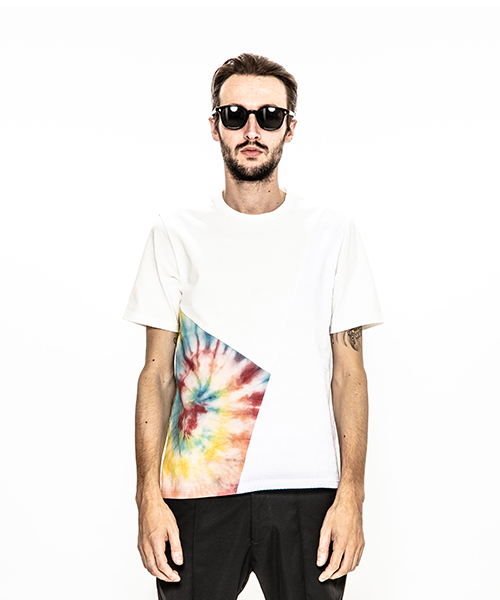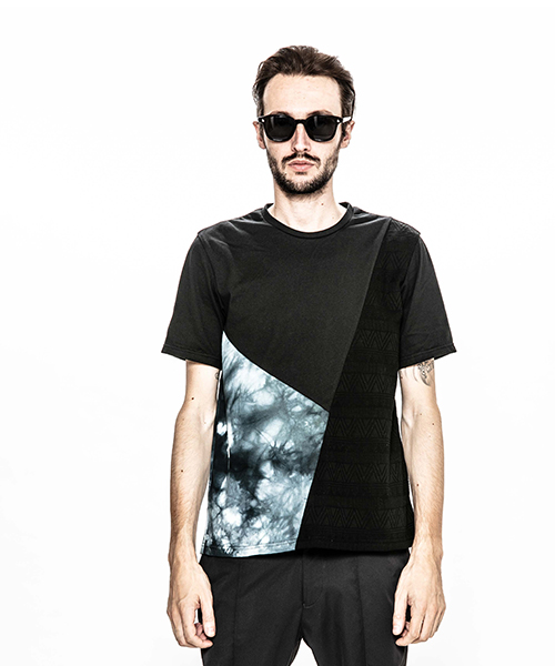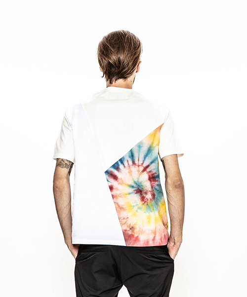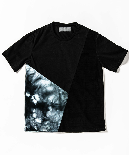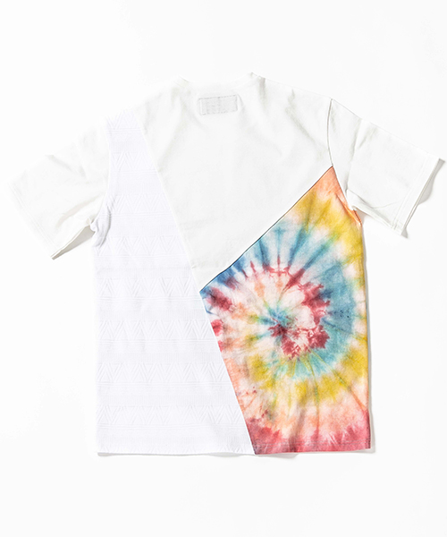 | spec | 無地、ナバホ柄、タイダイ染めを施した3種類の生地を切り替えたTシャツ。視覚的にも絶妙なバランスで柄生地を切り替える事でアクセントを追加。素材を生かした着心地の良いシルエットに仕上げている。タイダイ染め部分は手作業にて染めを施した生地を使用している為、1点1点表情の異なる特別な1枚となる。 |