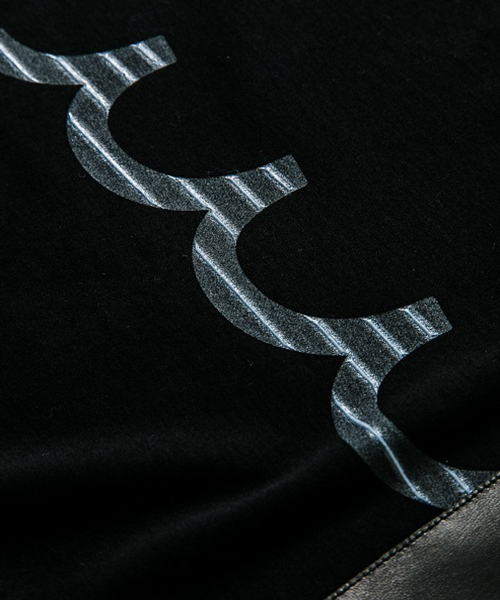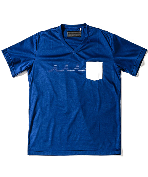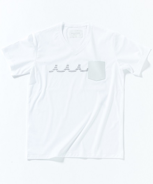 | spec | mutaとのコラボレーションコレクション。特殊な技術でボーダー柄を出す特別プリントをフロント、後身頃脇に配置。左胸には水洗い可能なウォッシャブルラムレザーを使用したポケットを取り付け。生地にはこのシリーズに特別に用意したパール80/-ハイゲージスムース生地を使用。清涼感の続く上質な着心地。 |