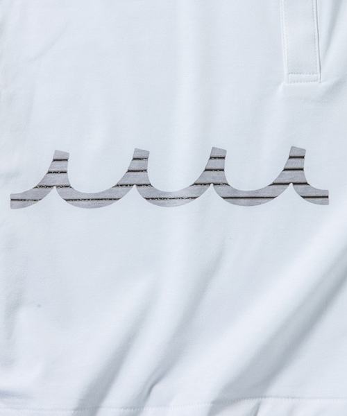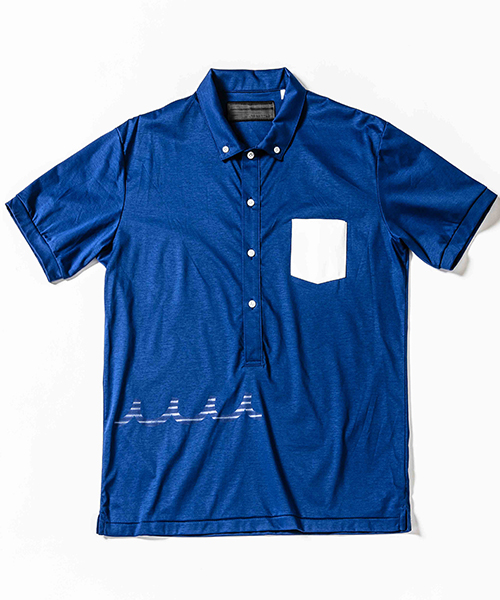 | spec | mutaとのコラボレーションコレクション。特殊な技術でボーダー柄を出す特別プリントをフロント、後身頃脇に配置。左胸には水洗い可能なウォッシャブルラムレザーを使用したポケットを取り付け。釦には本貝釦を使用。生地にはこのシリーズに特別に用意したパール80/-ハイゲージスムース生地を使用。清涼感の続く上質な着心地。 |