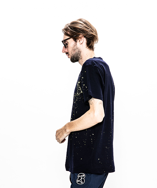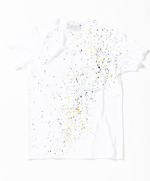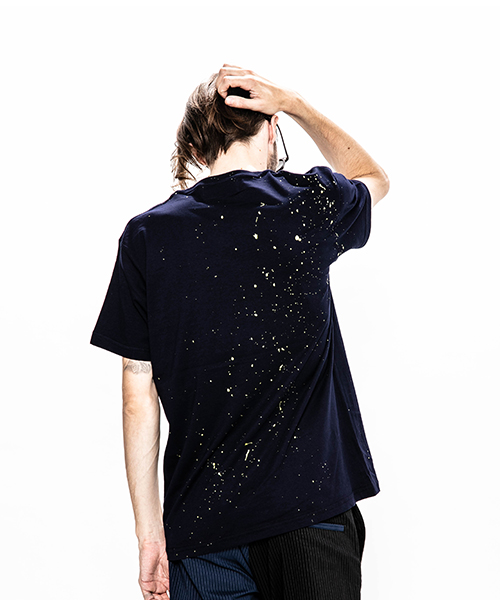 | spec | mutaとのコラボレーションコレクション。降り注ぐようなスプラッシュペイントにてmutaロゴを表現。手作業にて施している為、1点1点表情の異なるスペシャルな1枚となる。浅すぎず、深すぎないVネック仕様、丸胴に編み立てた身頃を使用したベーシックでスマートなシルエットのTシャツ。左脇にはブランド名であるACANTHUS(地中海地方産ハアザミ 属植物)の形をモチーフにしたアイコンを生地同色にて刺繍。 |