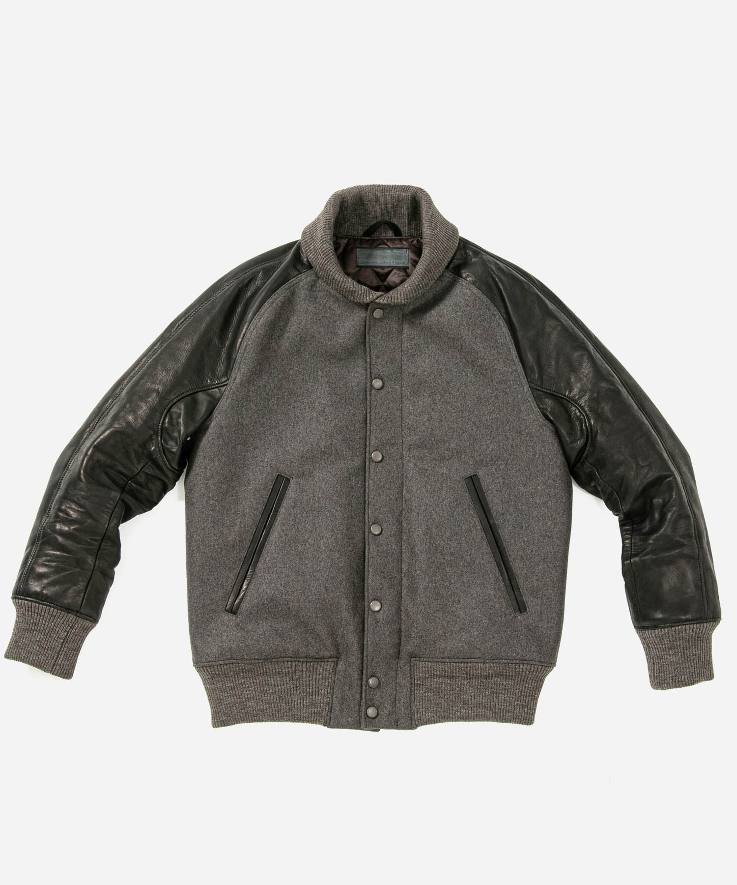 | spec | 定番のスタジアムジャケット。袖のレザーには着用時に生まれるシワを表現した3D加工を施している。ウール配合の上質なリブをオリジナルで編み立て。ファスナーには高品質なYKK EXCELLA製ファスナーを使用。ドット釦は同色系のレザーを包んだオリジナルドット釦を使用。裏地には滑らかな着心地のキュプラ生地を使用。見頃にはキルティング加工、袖は中綿挟みで保温性を確保している。袋布には温かみのある起毛コットンを使用。素材、縫製、加工あらゆる面に技術と拘りを詰め込んだ1着。 |