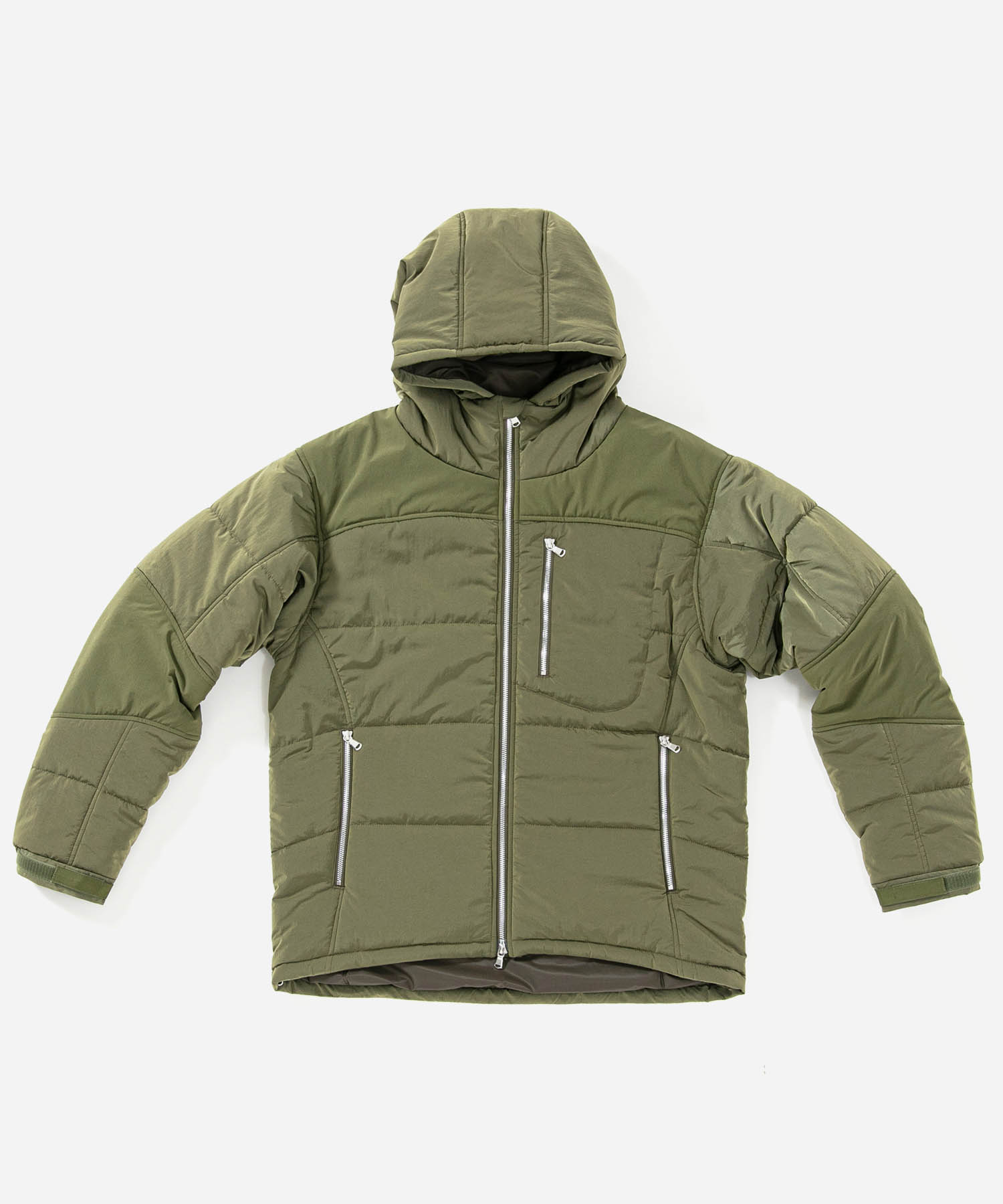 | spec | 寒冷地帯用に用いられるミリタリーアイテム、LEVEL7に該当するhi-loftジャケットとアウトドアギアに見られる機能、切り替えを落としこんだ100g中綿入りのタクティカルジャケット。ヨーク、肘パーツにストレッチ製のコンフォート2WAY生地を使用し立体的に切り替えている。ファスナーには軽量感とメッキの高級感を持つYKK社のMATALUXEを使用。裏地には20Dフルダル糸を使用した引き裂き強度と通気性に富んだマイクロリップストップ生地を使用。袋布には温かみのある起毛コットンを使用。顔を半分覆う事ができる大きく立体的なフードで防寒性を高めている。様々なインナーをレイヤードした上でも着用可能なシルエットで、保温性に富んでいる。 |