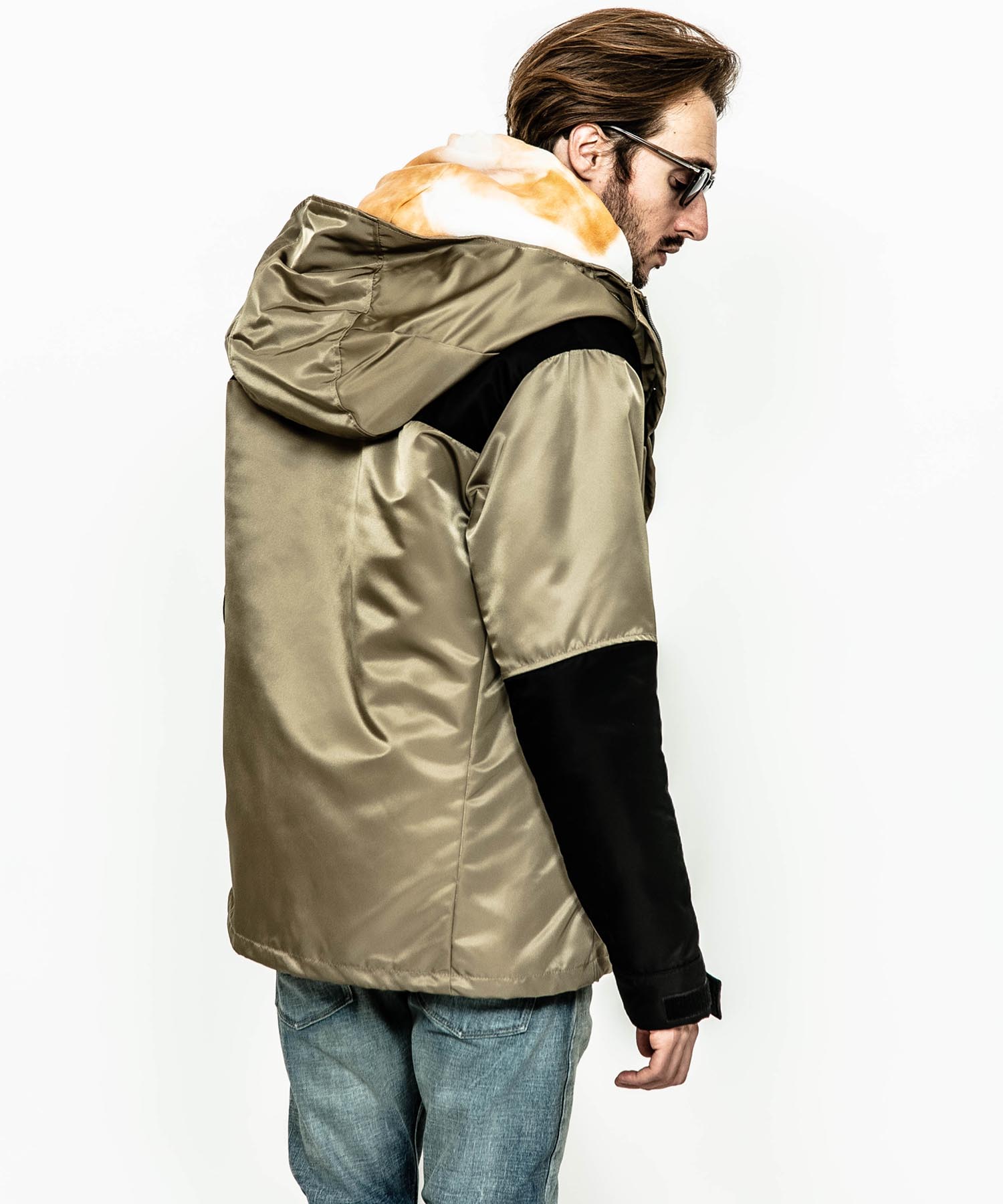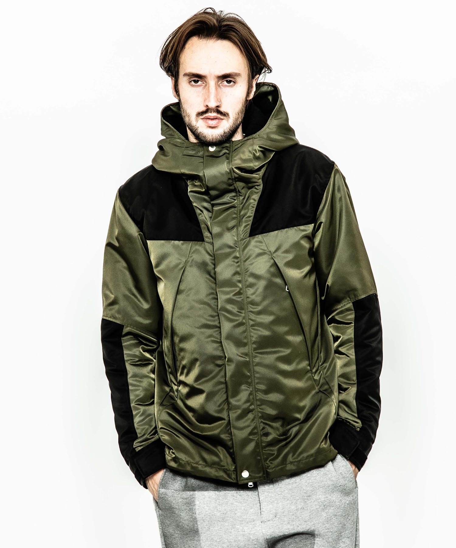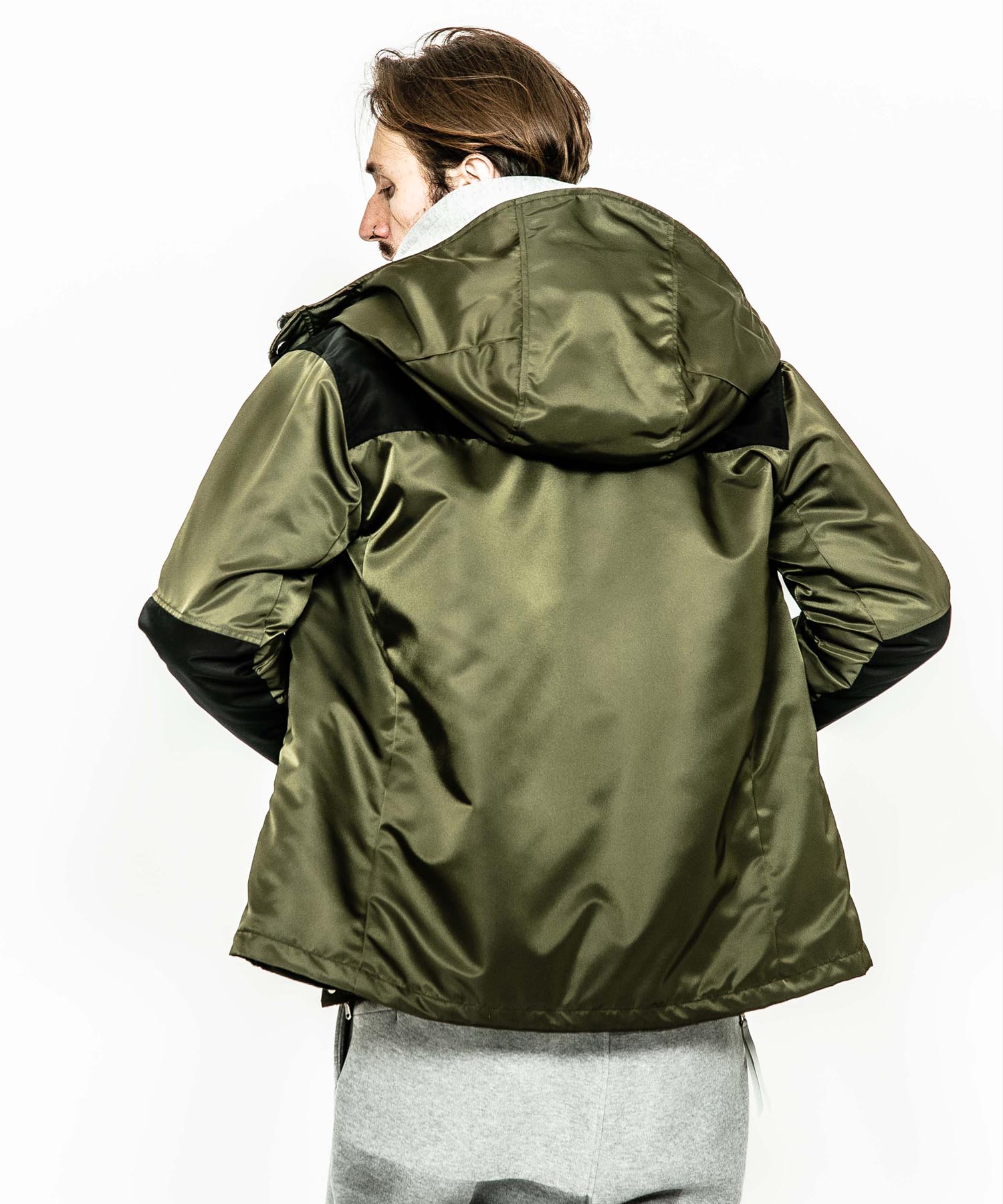 | spec | アウトドアギアに見られる機能的な切り替え、ディティールを落とし込んだマウンテンJKT。ファスナーには軽量感とメッキの高級感を持つYKK社のMATALUXEを使用。裏地には中綿を挟んだキルティング加工を施し、保温性を確保している。袋布には温かみのある起毛コットンを使用。顔を半分覆う事ができる大きく立体的なフードで防寒性を高めている。LIMONTA社のナイロン素材を使用しギア感ではなく上品な表情に仕上げた、有りそうで無かったマウンテンJKT。 |