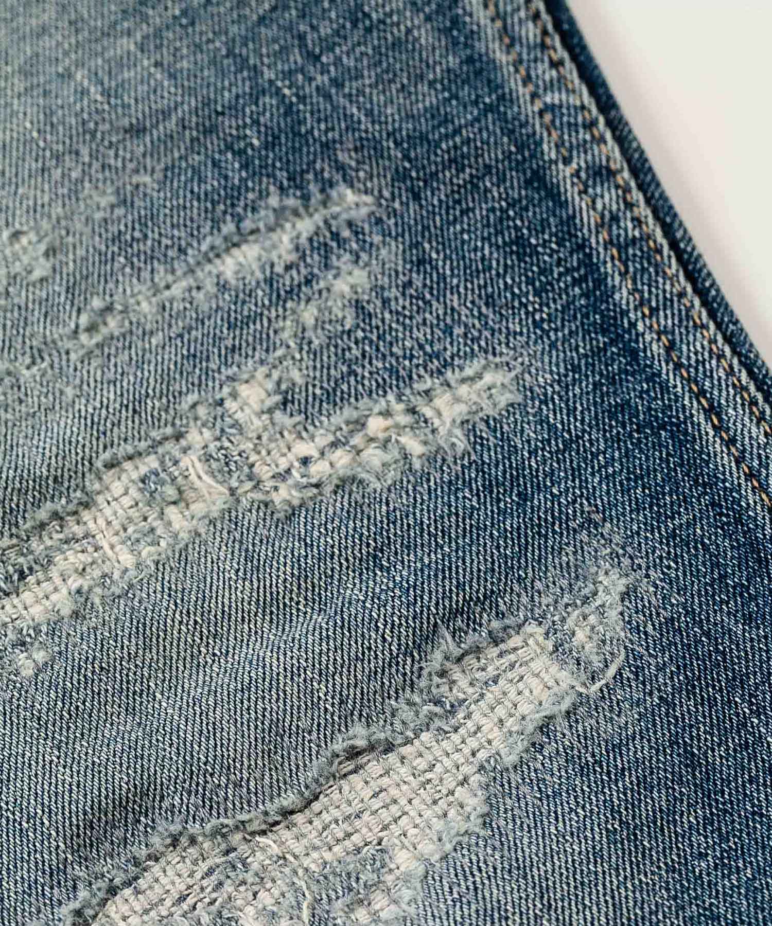 | spec | 釦には“ARTISAN SOUL”ロゴ入りのオリジナルタック釦を使用。裾巾を綺麗にテーパードさせたタイトシルエット。後ろパッチポケットには特殊ミシンによるハシゴステッチを施している。革パッチは加工にギリギリ耐えられるバックスキンを敢えて使用することで1点1点違った表情に。エッジのダメージ、ヒゲ、膝のリペアなどシンプルにヴィンテージデニムを追い求めた1本。Acanthusの新たな定番モデル。 |