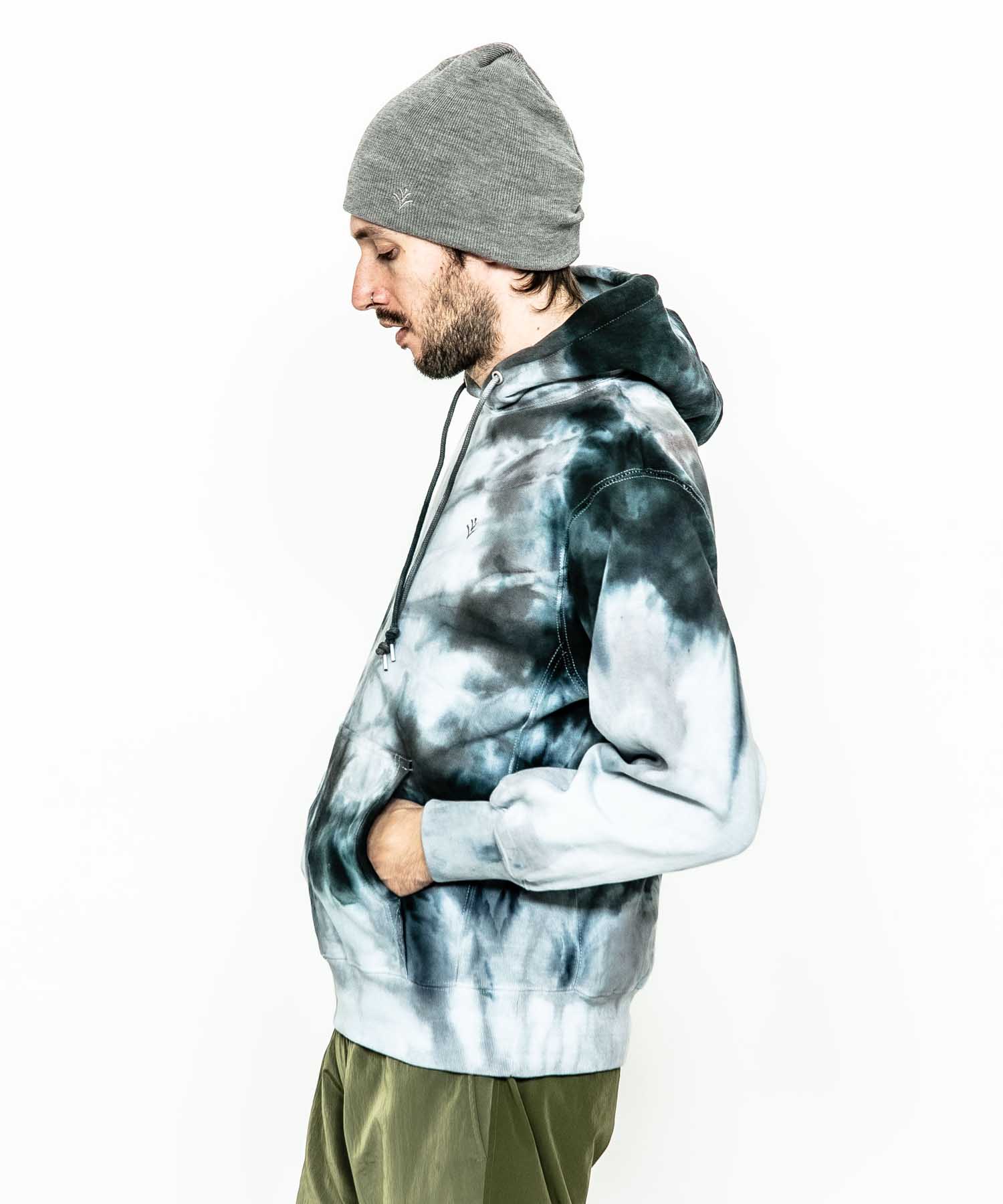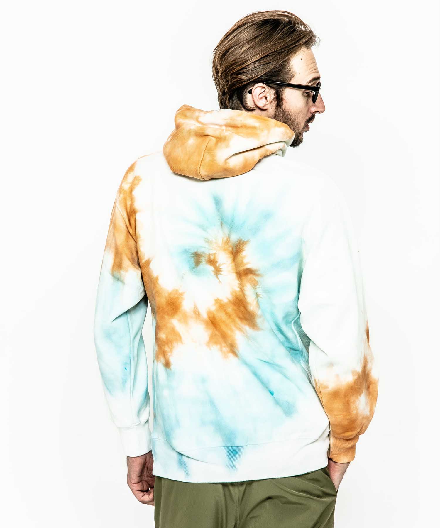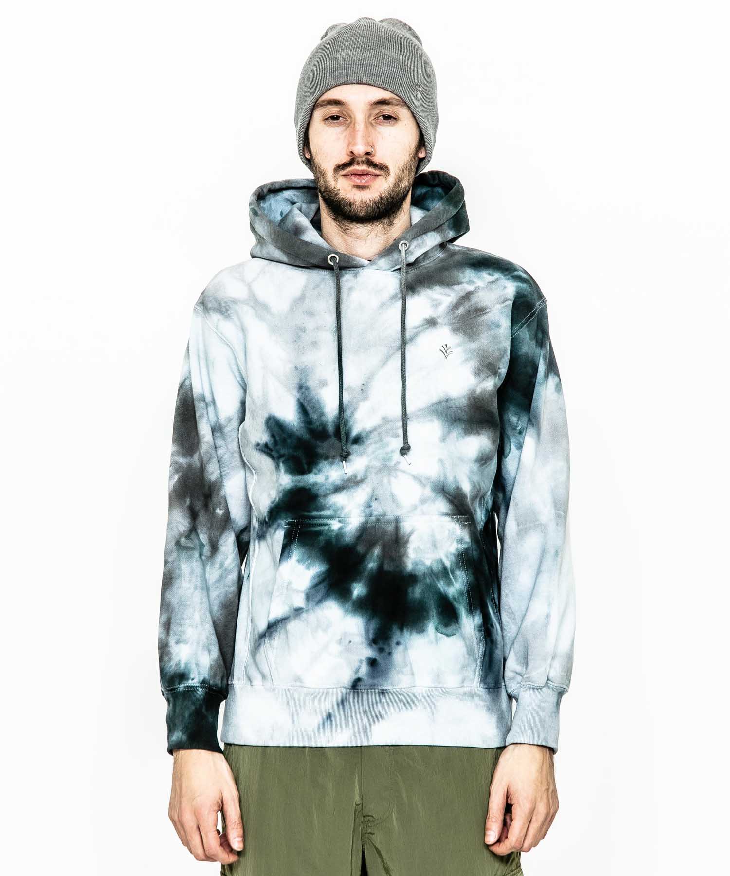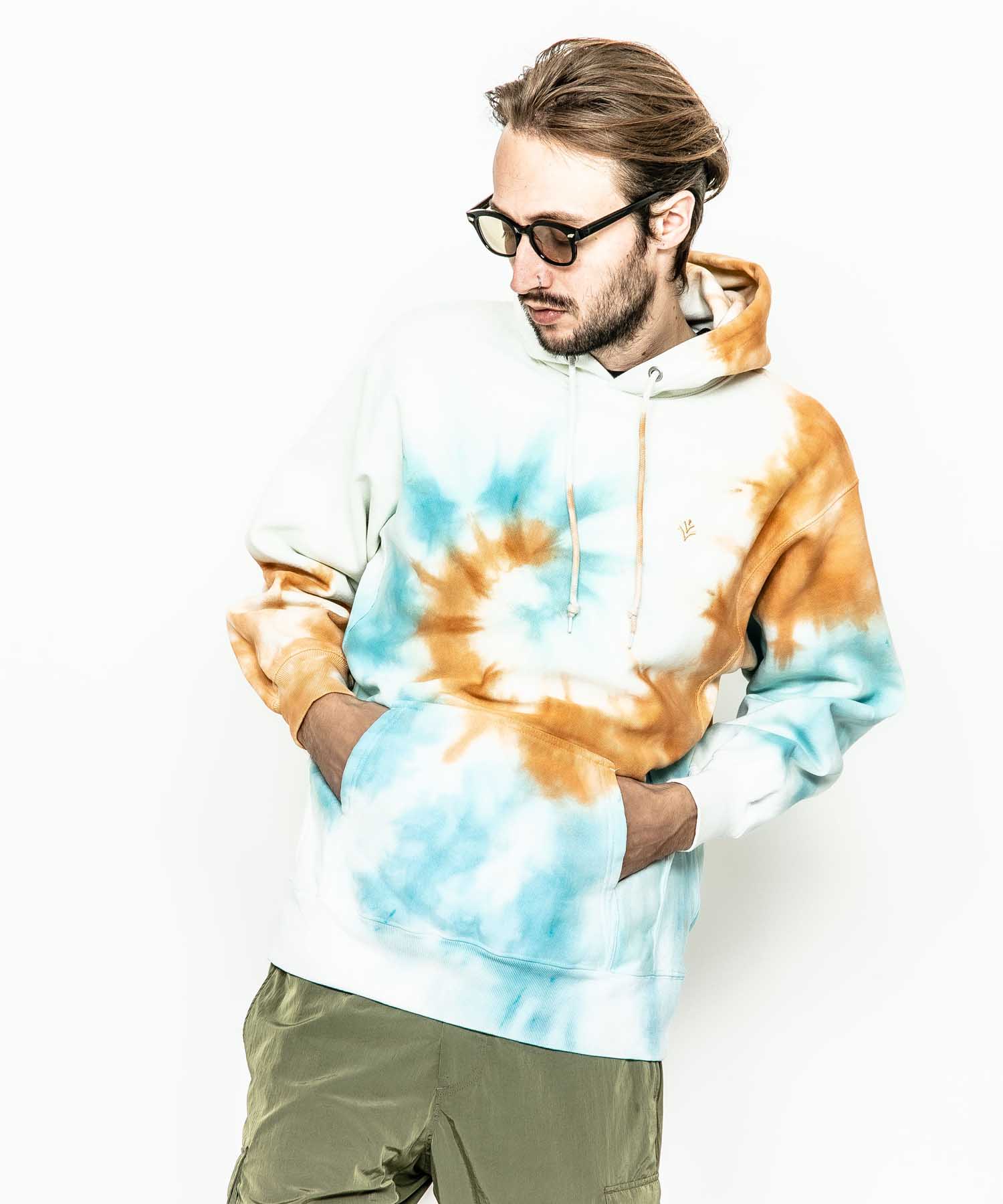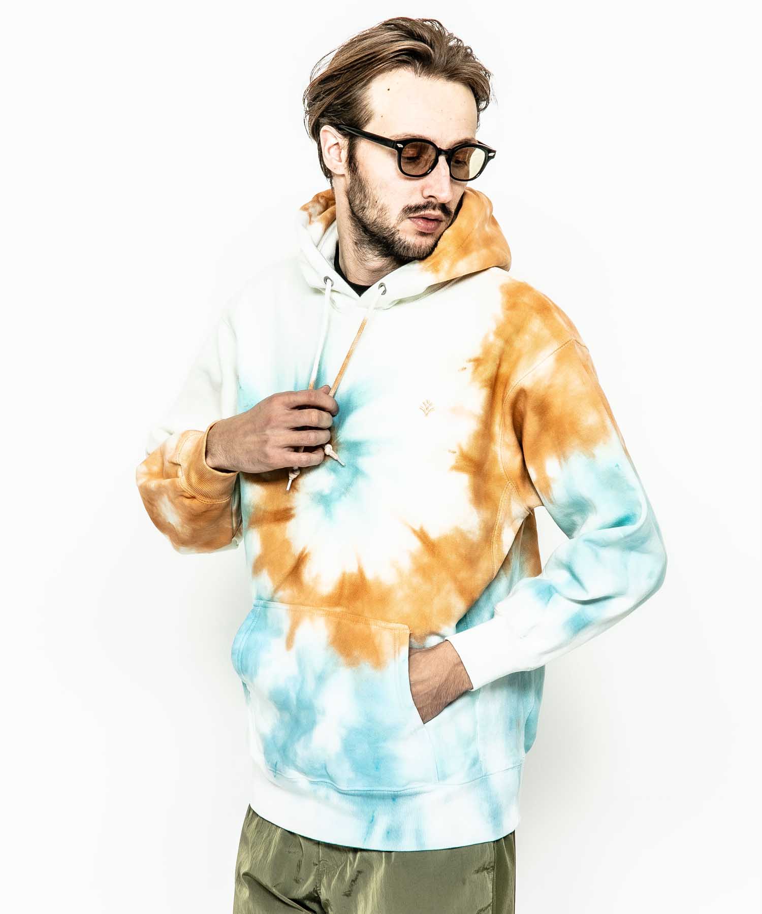 | spec | 生地目を横取りにしたリバースウェーブ仕様の身頃で型崩れを防ぎ、サイドパネルのリブ仕様となっているため、洗うほど、着こむほどに独特の風合いとエイジングが楽しむ事ができる。フードはしっかりとボリュームを持たせた2重仕立て。2本針裏振りにて縫製する事で、頑丈な仕上がりに。フードはアイレット+スピンドル仕様。左胸にはブランド名であるACANTHUS(地中海地方産ハアザミ 属植物)の形をモチーフにしたアイコンを生地同系色で刺繍。有松地方の染め職人による、スパイラル絞りのタイダイ染めにて仕上げた美しい染め色、柄が特徴なフーディ。 |