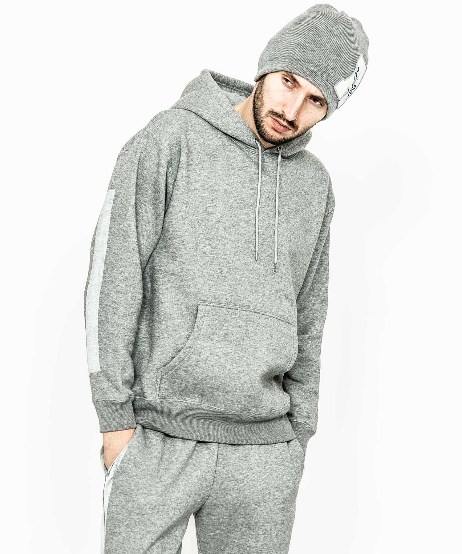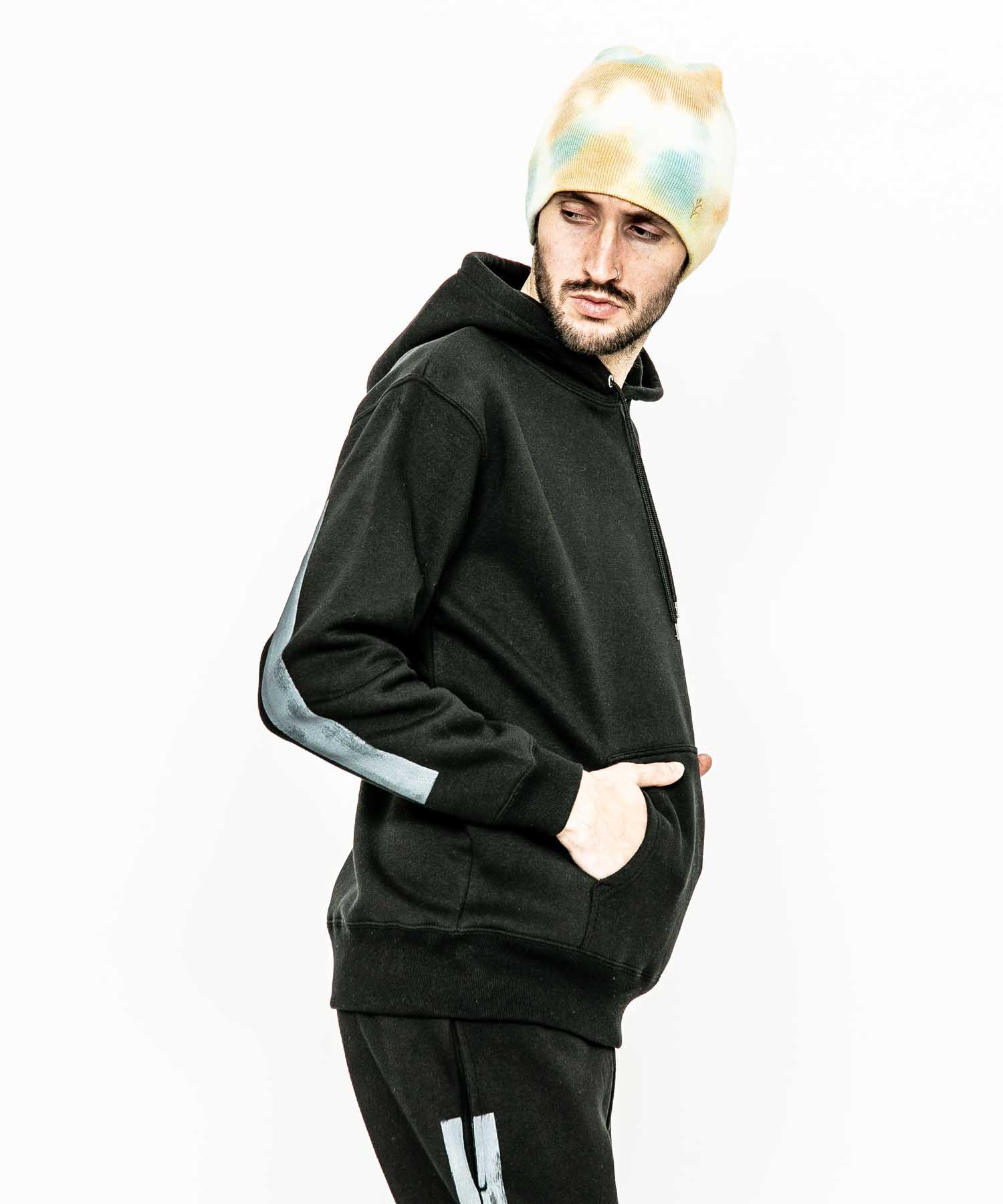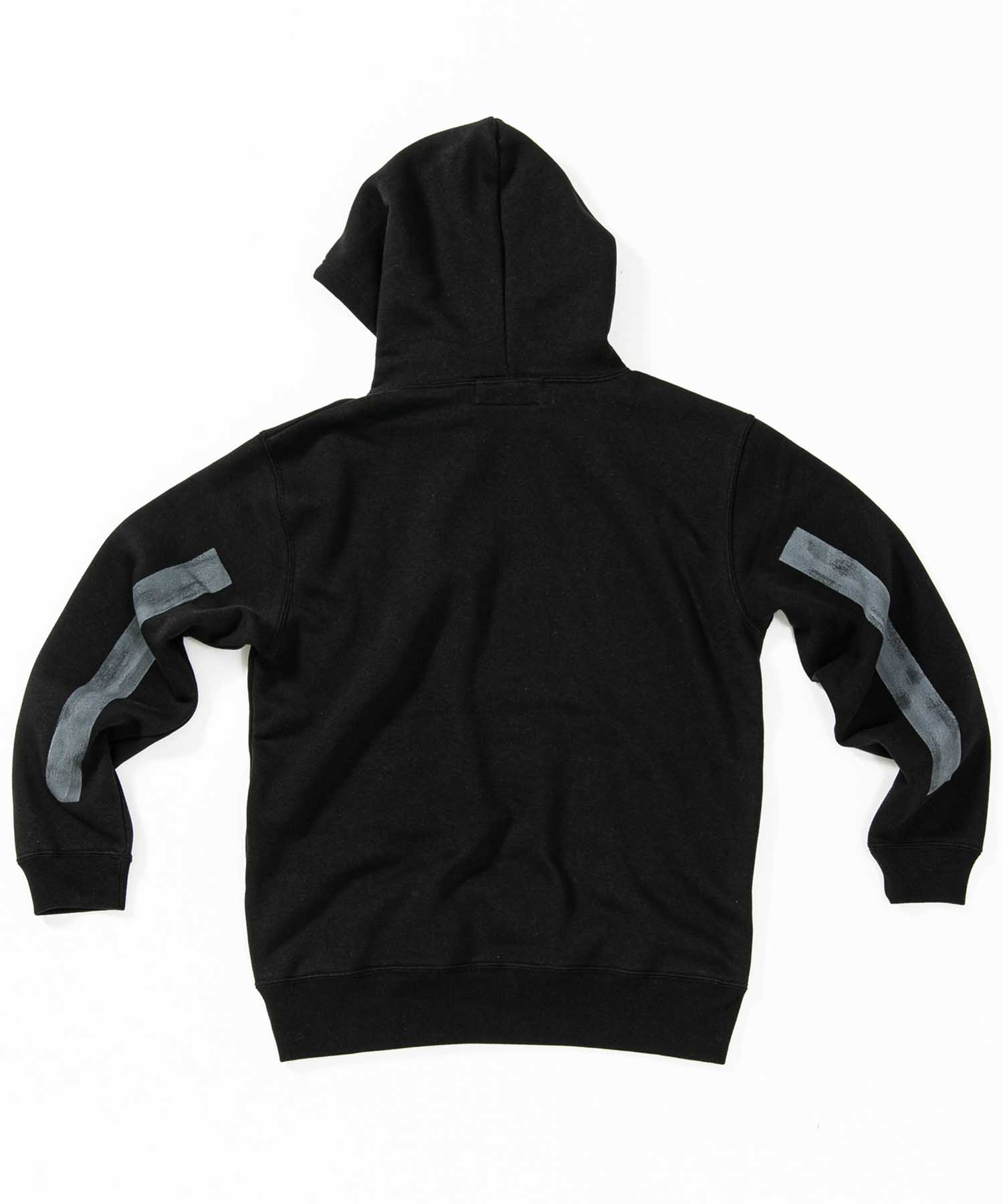 | spec | 裏毛起毛生地を使用したプルオーバーパーカー。フードはしっかりとボリュームを持たせた2重仕立て。左胸にはブランド名であるACANTHUS(地中海地方産ハアザミ 属植物)の形をモチーフにしたアイコンを生地同系色で刺繍。1点1点ハンドペイントによる袖後ろに入るラインが特徴。 |