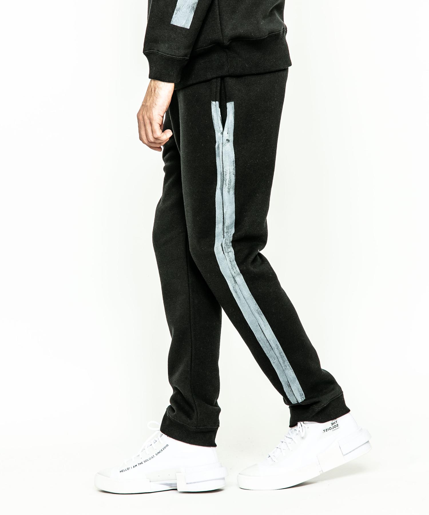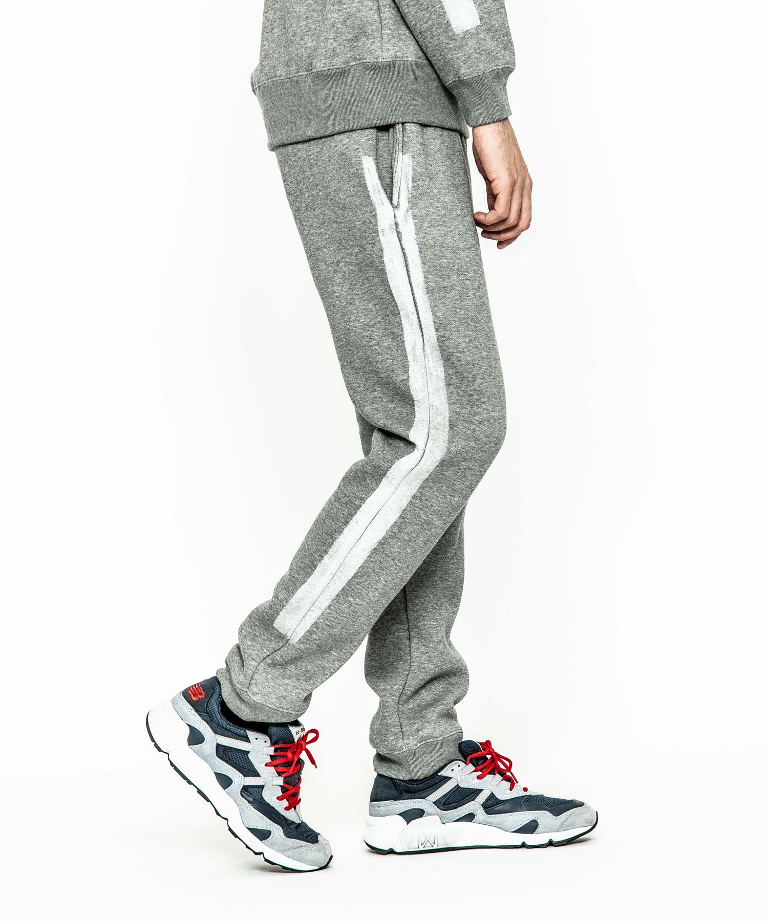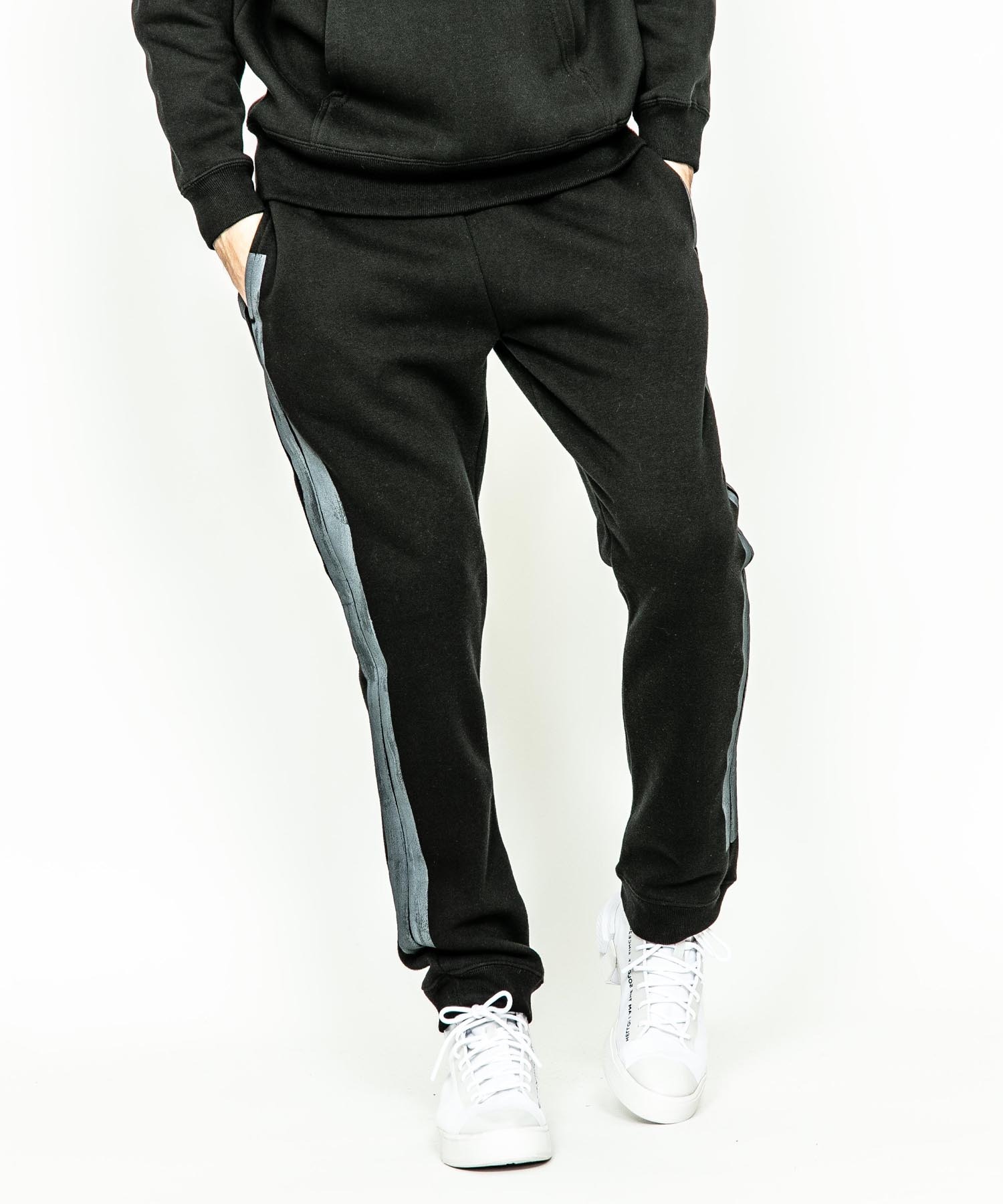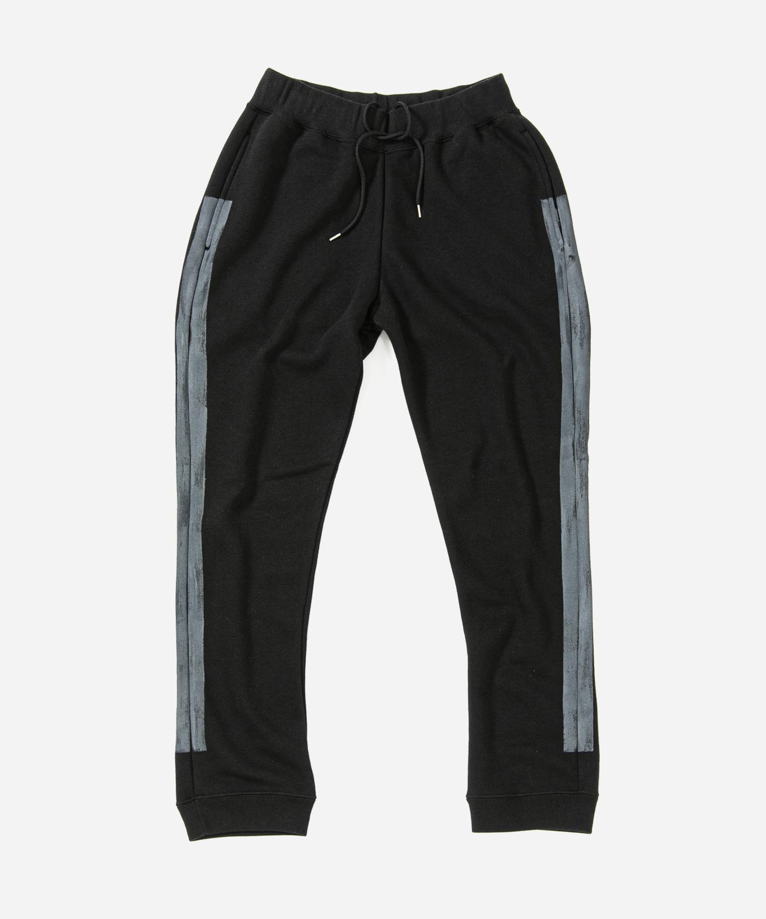 | spec | 裏毛起毛生地を使用したスウェットパンツ。両脇にはハンドポケットを配置。ウエストはゴム+スピンドルのイージーパンツ仕様。後ろ身頃右上部にはブランド名であるACANTHUS(地中海地方産ハアザミ 属植物)の形をモチーフにしたアイコンを生地同系色で刺繍。1点1点ハンドペイントによる両サイドに走るラインが特徴。 |