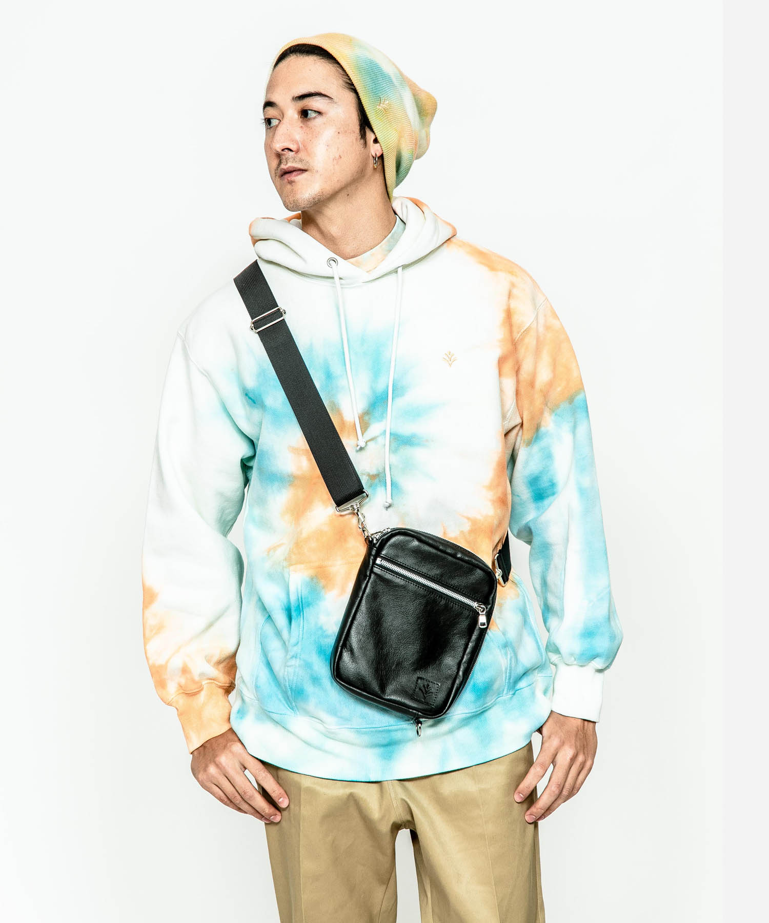 | spec | 防水レザーを使用したショルダーBAG。ファスナーには高品質なYKK EXCELLAファスナーを採用。メインファスナーは大きく開閉可能。内側には両面に便利な内ポケットが付く。脇には同レザーを使用した、ブランド名であるACANTHUS(地中海地方産ハアザミ 属植物)の形をモチーフにしたアイコンを刺繍したパッチを配置。 |