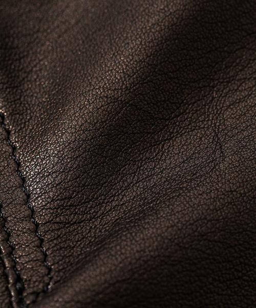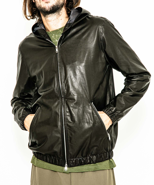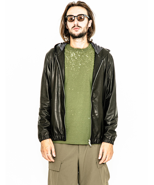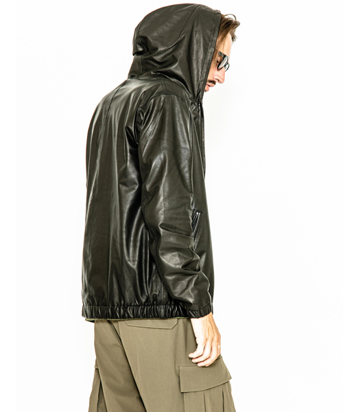 | spec | フロントにファスナーPKを配置したシンプルはフーディーJKT。動きやすさを重視したリラックスシルエット。表地には贅沢にも極薄に漉いたスペインラム エントロフィーノを使用し、他のレザージャケットにはない軽やかな気心地を実現。裏地には肌滑りの良いキュプラ、袋布にはコットン生地を使用。ファスナーには高品質なYKK EXCELLAファスナーを採用。 |