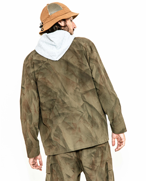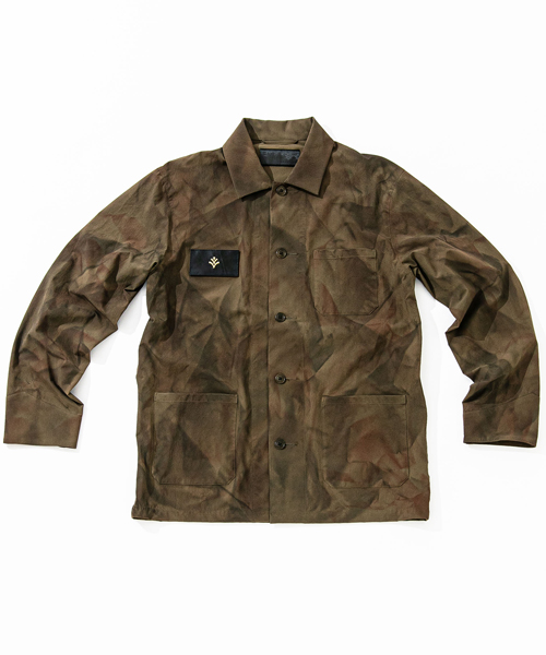 | spec | 50s Dutch Army(オランダ軍)ジャケットをベースに現代的な素材とシルエットに仕上げたミリタリーシャツJKT。動きやすさを重視したリラックスシルエット。1枚仕立てで、右胸にはベルクロにて取り外し可能な、レザーワッペンを配置。JK2001C品番は、手作業によるスプレー加工にて特殊な迷彩柄を表現した特別仕様となっている。 |