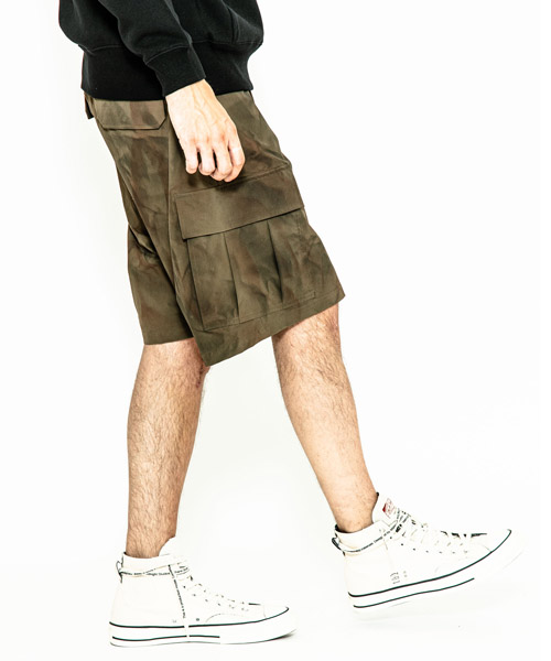 | spec | 1965年に開発されたアメリカ軍のM-65パンツをベースにしたミリタリーショーツ。ウエストはゴム&ドローコード仕様のイージー仕様。動きやすさを重視したリラックスシルエット。左脇のフラップ部分にはベルクロにて取り外し可能な、レザーワッペンを配置。JKP2001C品番は、手作業によるスプレー加工にて特殊な迷彩柄を表現した特別仕様となっている。 |