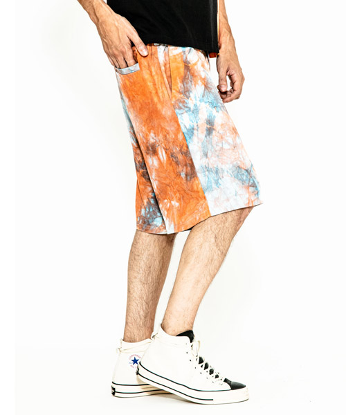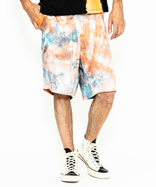 | spec | ウエストにはゴム、ドローコード仕様のイージーショーツ。動きやすさを重視した、リラックスシルエット、涼しげな素材を使用している為、夏場でも快適な履き心地を実現。SHP2001D品番は、1点1点手作業によるタイダイ染め加工を施した特別仕様となっている。 |