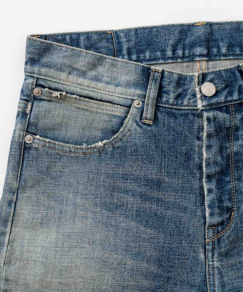 | material | 岡山産の13ozストレッチデニム。ヴィンテージデニムに近い表情を損なわないようにストレッチ性を最低限に抑え履き心地も考慮されたモダンなデニム素材。 |