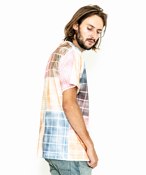 | spec | 首フライスは2本針縫製、丸胴に編み立てた身頃を使用したベーシックなシルエットのTシャツ。左脇にはブランド名であるACANTHUS(地中海地方産ハアザミ 属植物)の形をモチーフにしたアイコンを生地同色にて刺繍。マルチな色合いのパッチワークチェック柄を、特殊な手法によるハンドプリントにて1点1点を表現している。 |