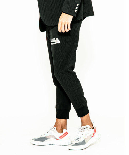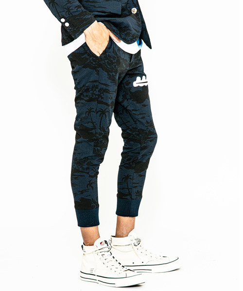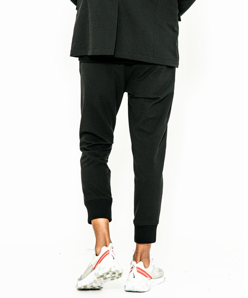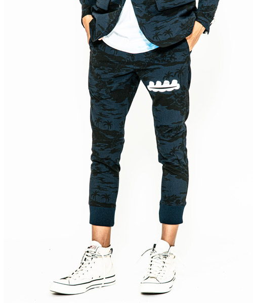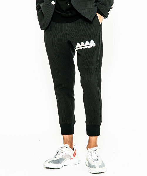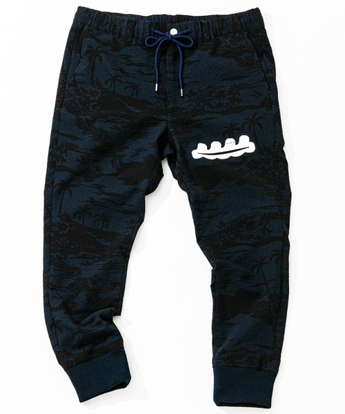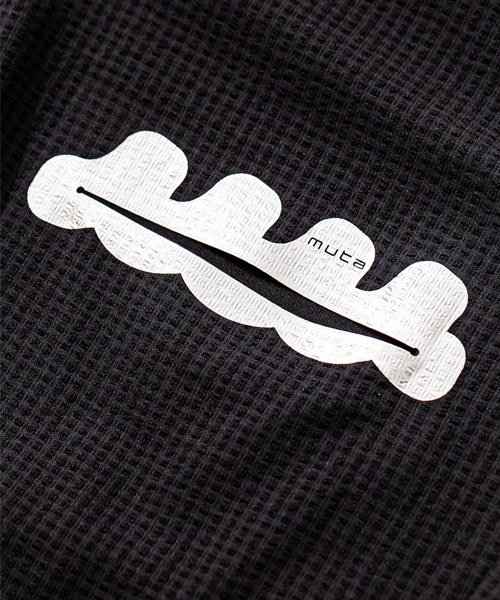 | spec | mutaとのコラボレーションコレクション。ウエストはベルトループ+ドローコード付きのイージー仕様。ワタリはややゆとりを持たせて、裾のリブまでストレッチ性を生かした、綺麗なタイトシルエットに仕上げている。左前には特殊な圧着加工にて取り付けたトリミングポケットを配置している。black色にはシルバー色、navy aloha色にはホワイト色を使用しmutaのwaveロゴポケットがキャッチーな仕上がり。 |