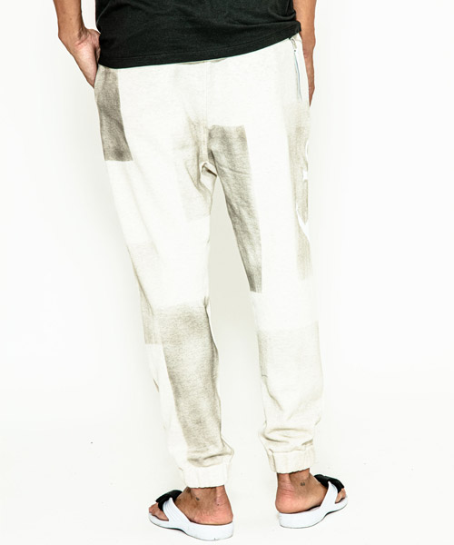 | spec | 股上深めのセミサルエルシルエットのイージーPT。後PKファスナーには軽量感、メッキの高級感を持つYKK社のMATALUXEを使用。引き手にレザーテープを追加。ウエストゴム仕様でスピンドルにて調節が可能。PW品番は特殊な手法によるプリントにて、1点1点特別なパッチワーク柄を表現している。mutaロゴはペイントにより表現。インパクトのある錨は海を馳せるmutaにはふさわしいマークです。 |