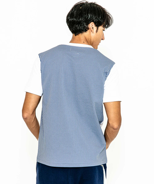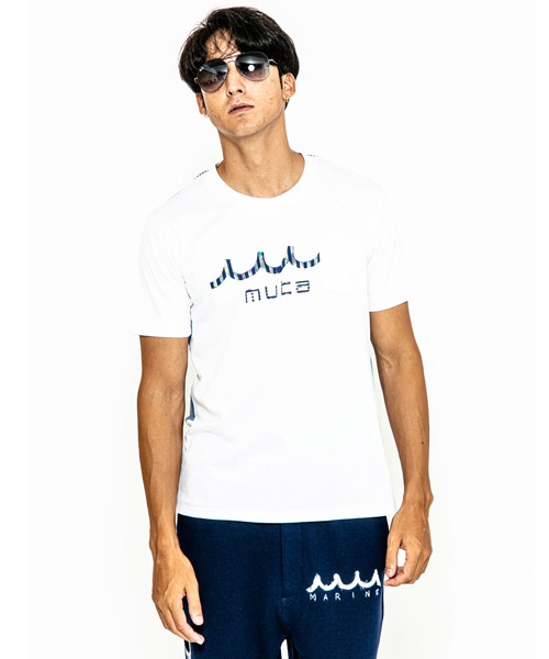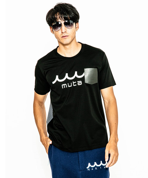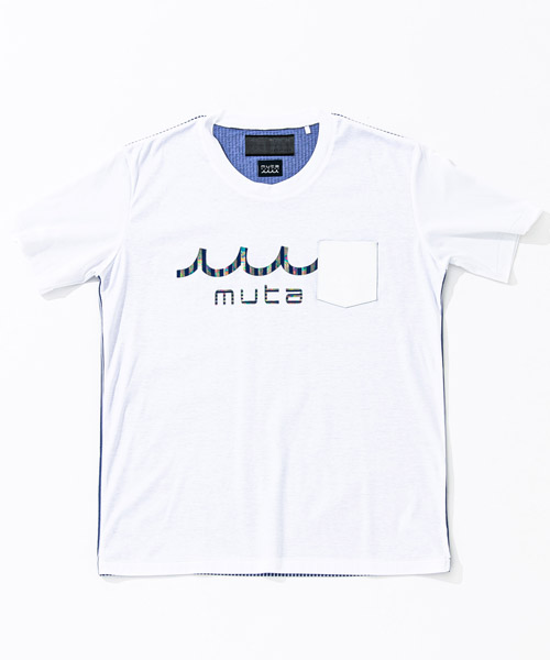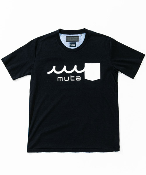 | spec | mutaとのコラボレーションコレクション。特殊な技術でボーダー柄をホログラム調に表現したmutaロゴをプリント。左胸には水洗い可能なウォッシャブルラムレザーを使用したポケットを取り付け。後ろ見頃にはCOOLMAX糸を使用したニットサッカー素材にて切り替え、清涼感の続く快適で上質な着心地を実現。 |