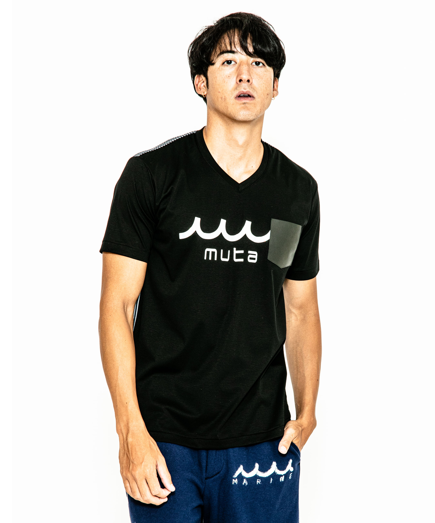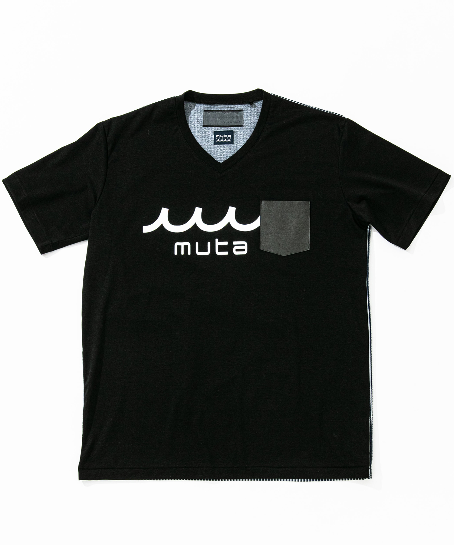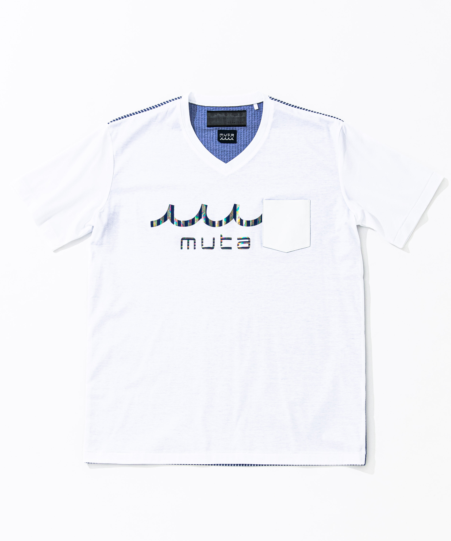 | spec | mutaとのコラボレーションコレクション。特殊な技術でボーダー柄をホログラム調に表現したmutaロゴをプリント。左胸には水洗い可能なウォッシャブルラムレザーを使用したポケットを取り付け。後ろ見頃にはCOOLMAX糸を使用したニットサッカー素材にて切り替え、清涼感の続く快適で上質な着心地を実現。 |