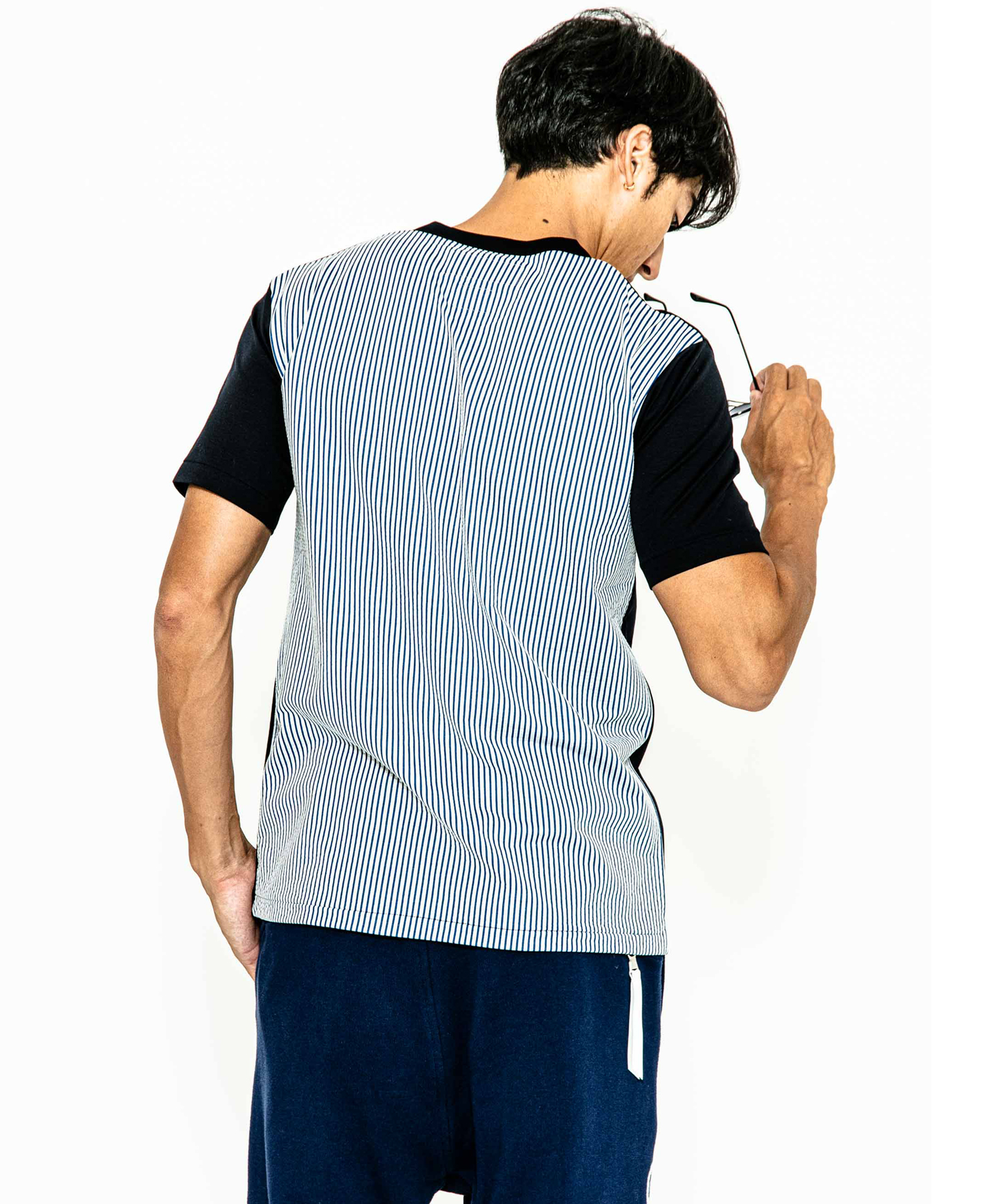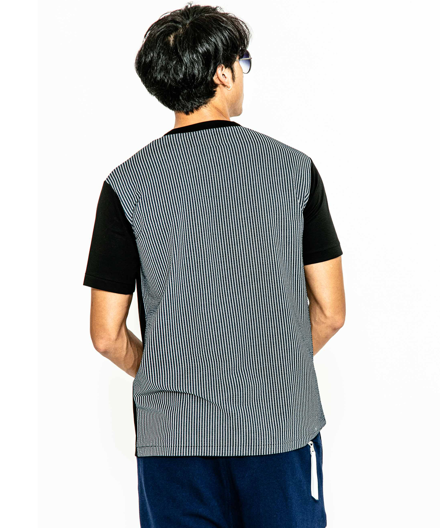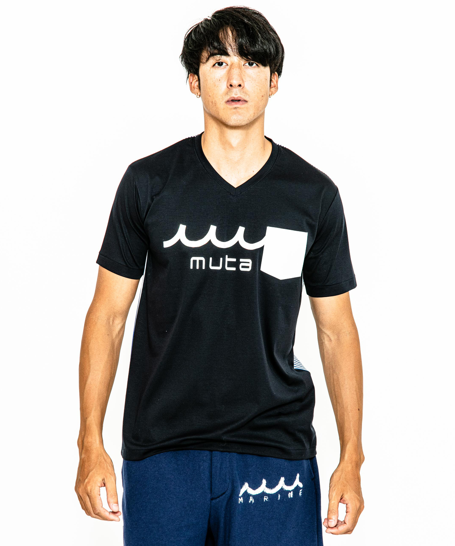 | spec | mutaとのコラボレーションコレクション。特殊な技術でボーダー柄をホログラム調に表現したmutaロゴをプリント。左胸には水洗い可能なウォッシャブルラムレザーを使用したポケットを取り付け。後ろ見頃にはCOOLMAX糸を使用したニットサッカー素材にて切り替え、清涼感の続く快適で上質な着心地を実現。 |