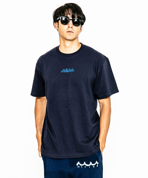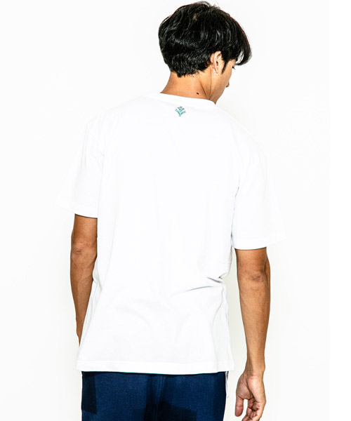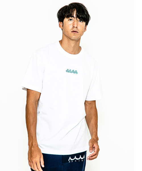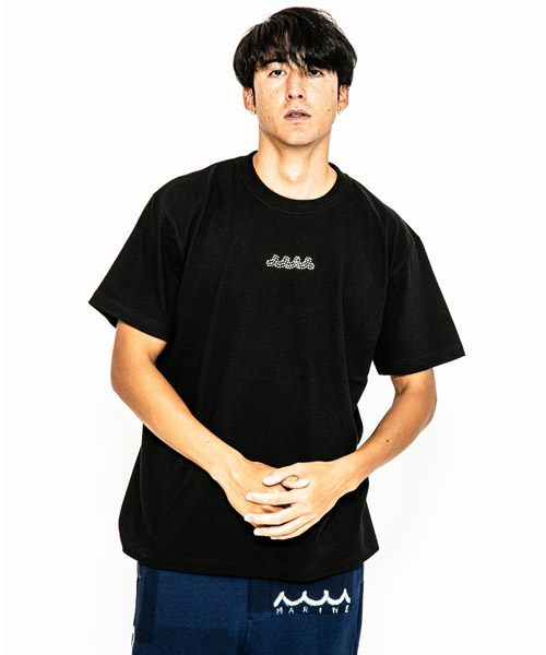 | spec | mutaとのコラボレーションコレクション。首フライスは2本針縫製、丸胴に編み立てた身頃を使用したベーシックなシルエットのTシャツ。フロントにはmuta waveロゴ、CBにはACANTHUS(地中海地方産ハアザミ 属植物)の形をモチーフにしたアイコンをSwarovski®ストーンを使用し表現。 |