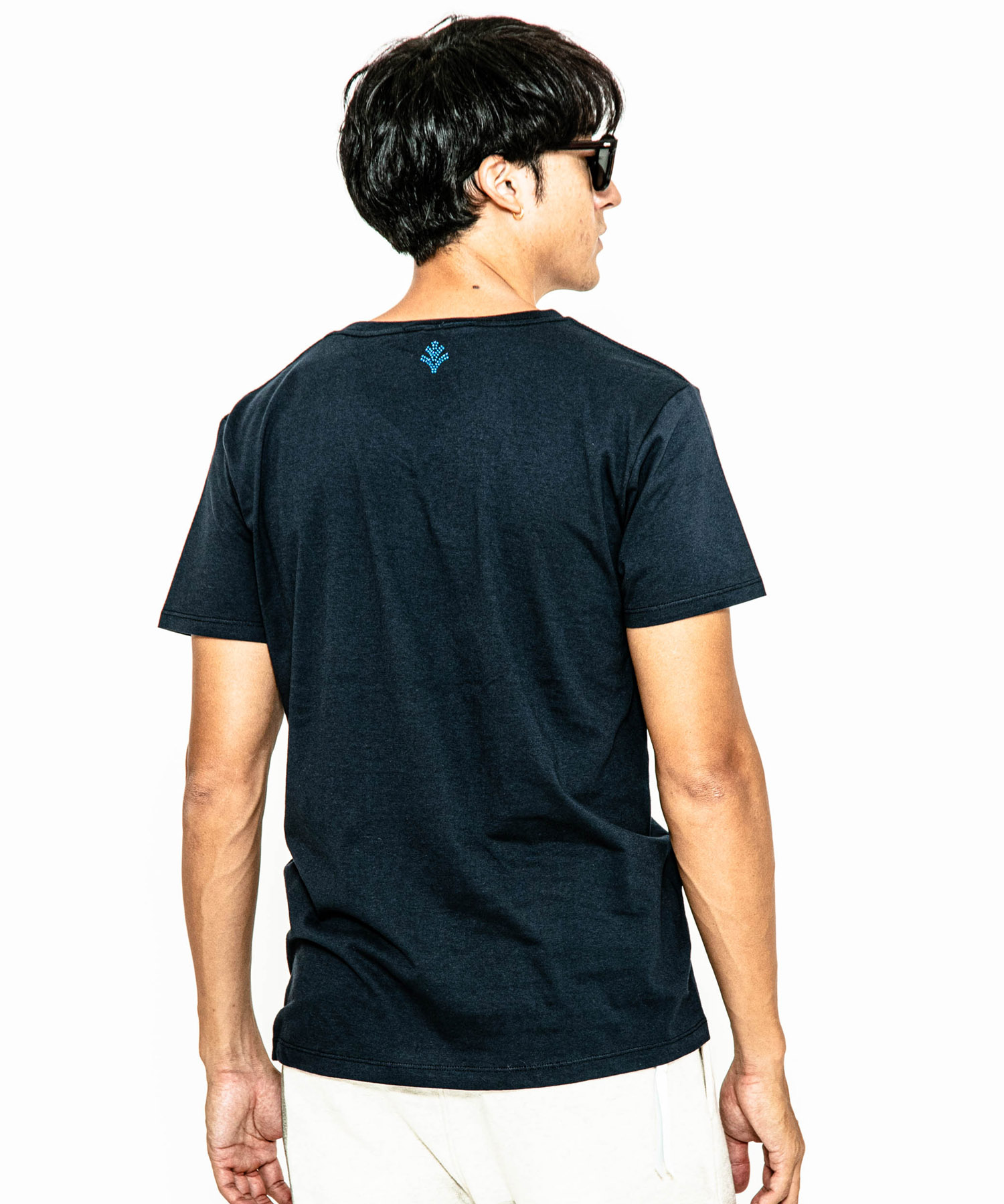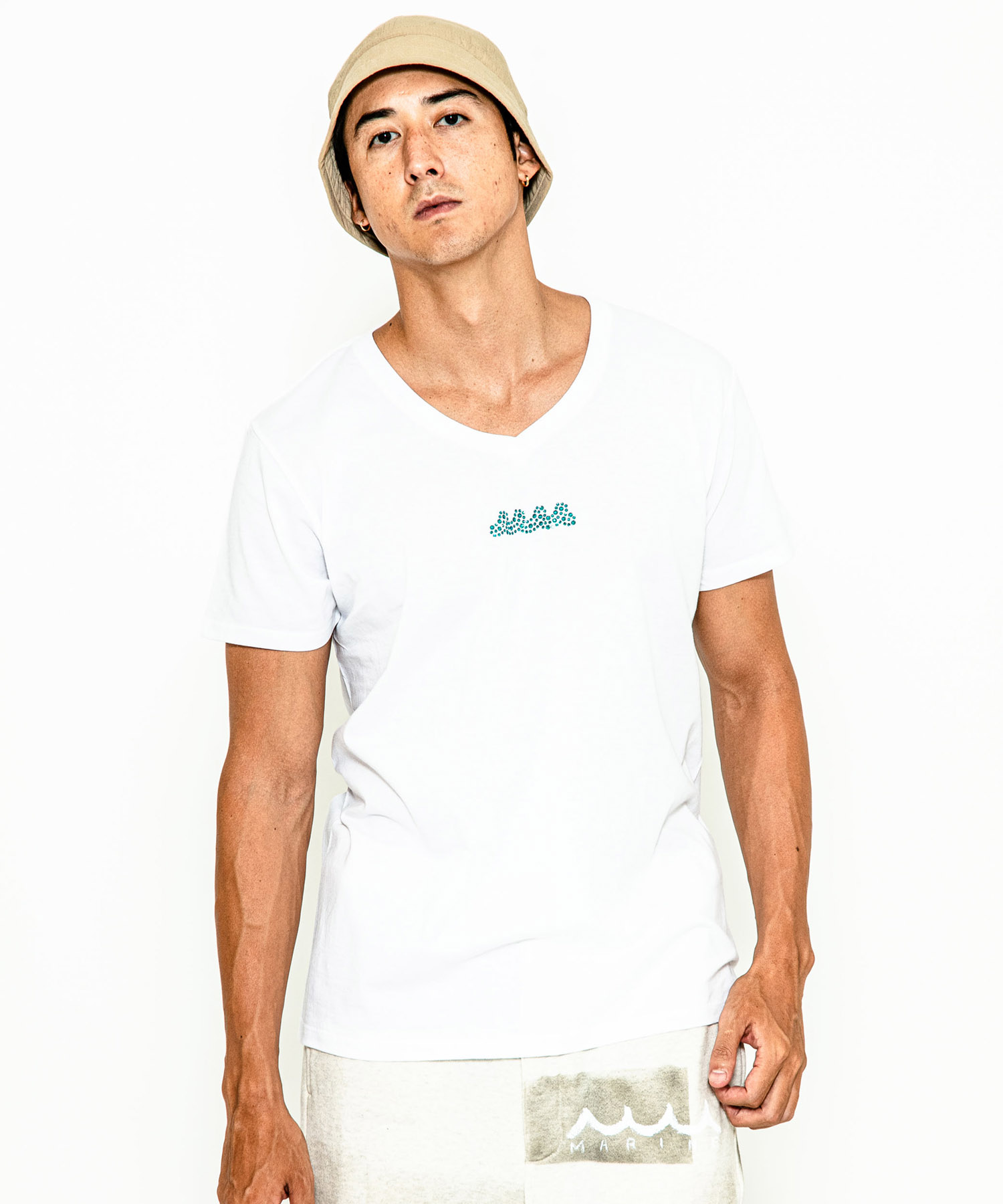 | spec | mutaとのコラボレーションコレクション。丸胴に編み立てた身頃を使用したベーシックながらややタイトに仕上げたVネックTシャツ。フロントにはmuta waveロゴ、CBにはACANTHUS(地中海地方産ハアザミ 属植物)の形をモチーフにしたアイコンをSwarovski®ストーンを使用し表現。 |