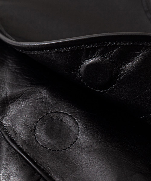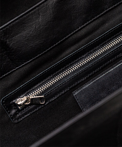 | spec | 縫製に関してはまず、ミシンにおいて基本的な針を一つとってみても普通の針よりも滑らかに走る針を使用しています。持ち手を縫う際にはできるだけしっかりキワまで縫っていけるようにおさえを手作業にてミリ単位の感覚で削り、ミシン自体をカスタマイズしていく。そうしてできた完成された特殊な治具(ジグ)を用い、確かな技術で最高の使用環境を支えていきます。カーブの大きいラウンド感を表現するためいせ込みを絶妙な配分で均一にする。洋服では当たり前のテクニックですがレザーのようなハリのある素材でしかも形に沿った立体感も出していかなくてはならないので熟練の業を以って臨む必要があるバッグです。 |