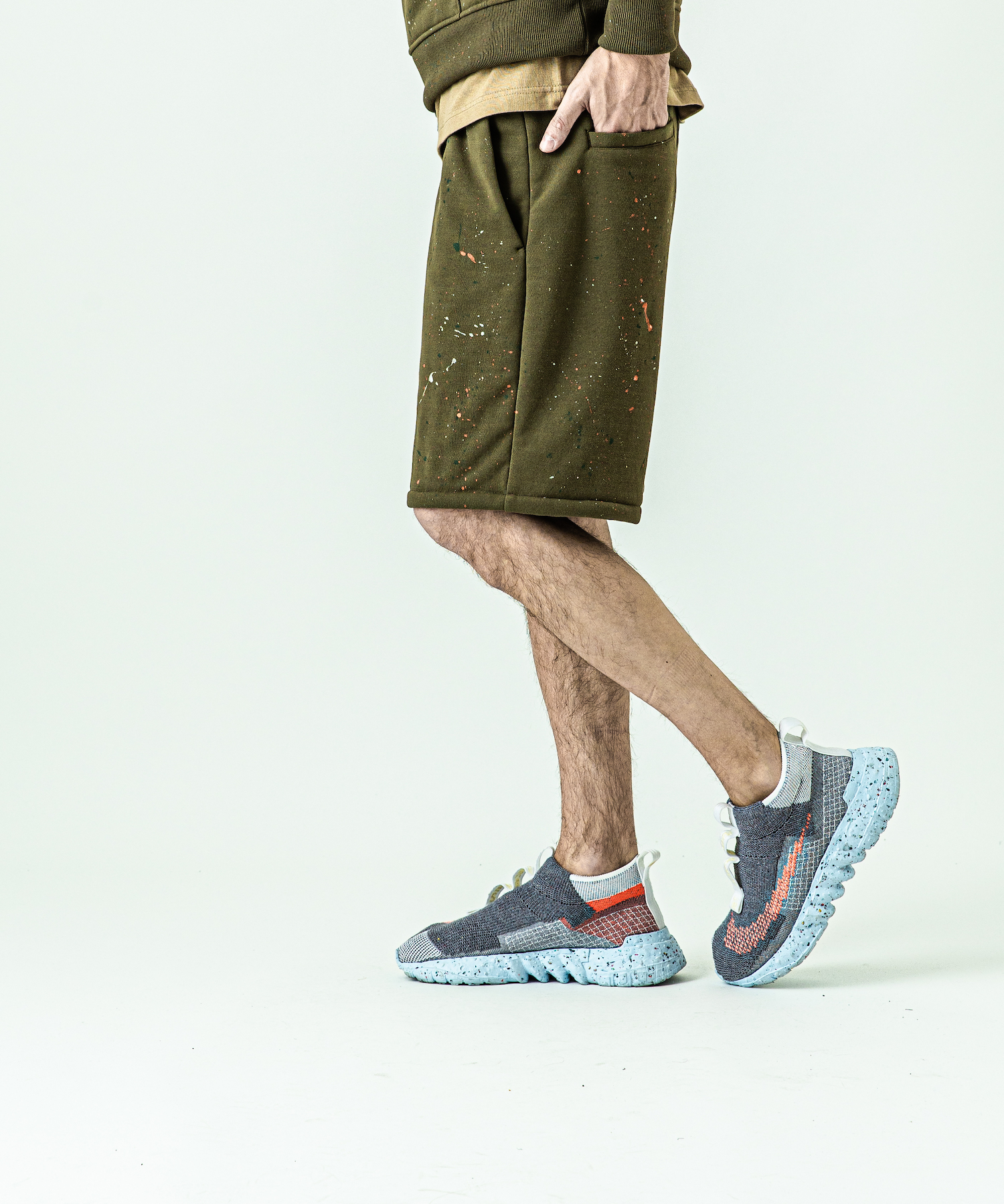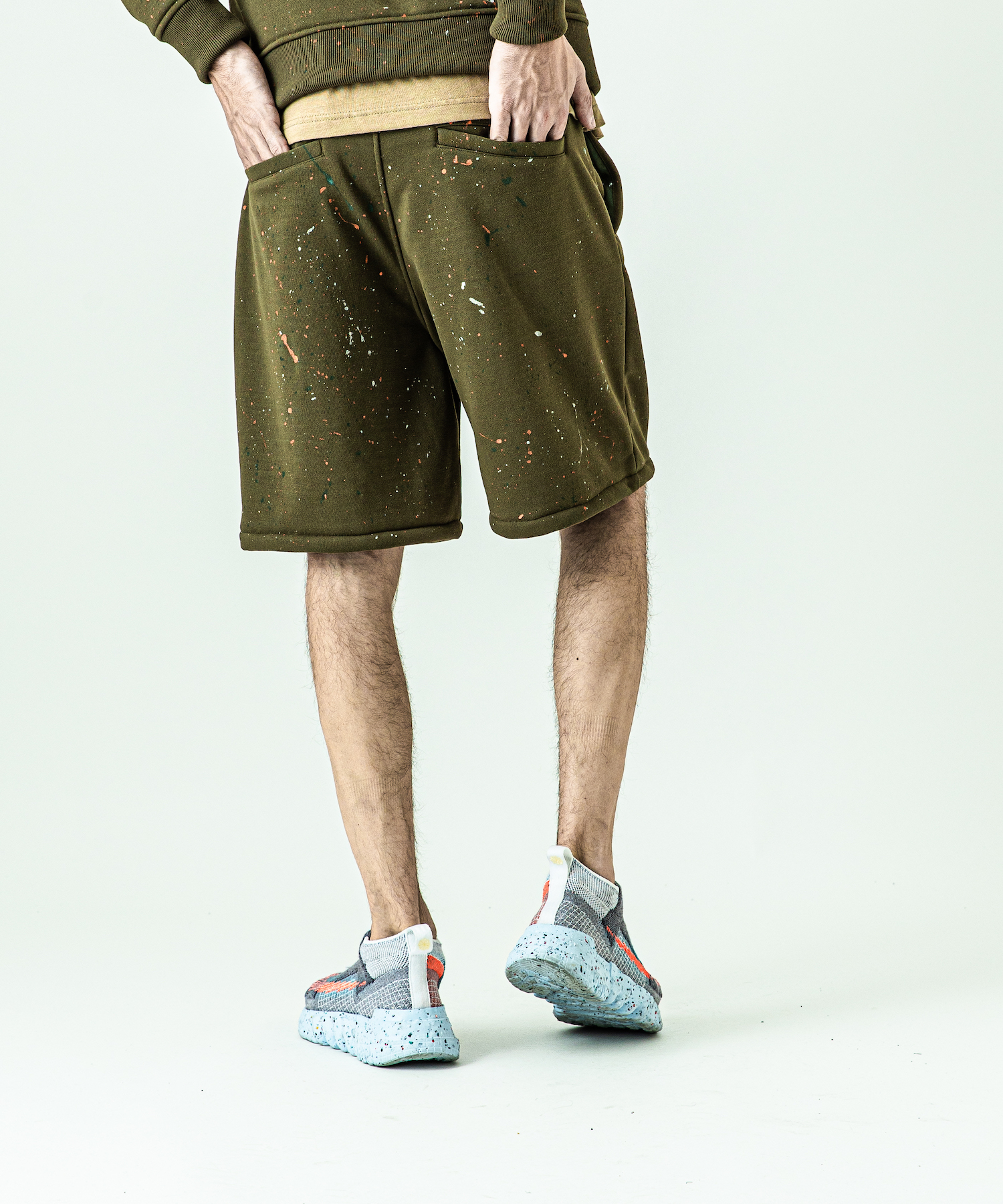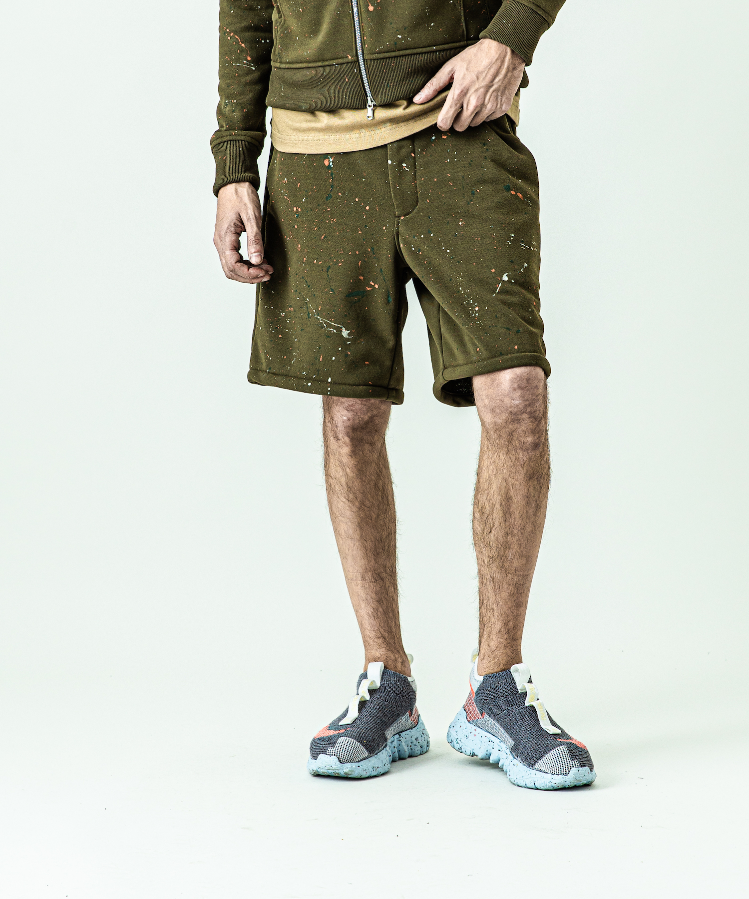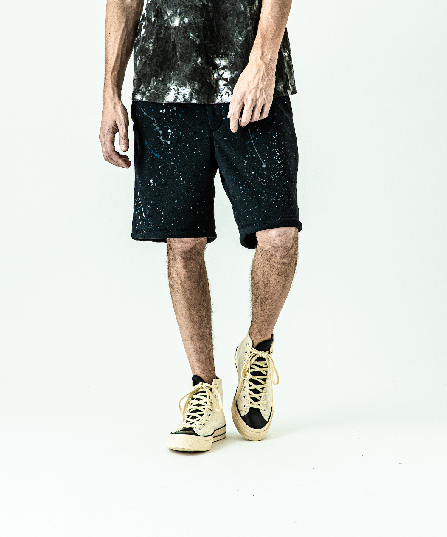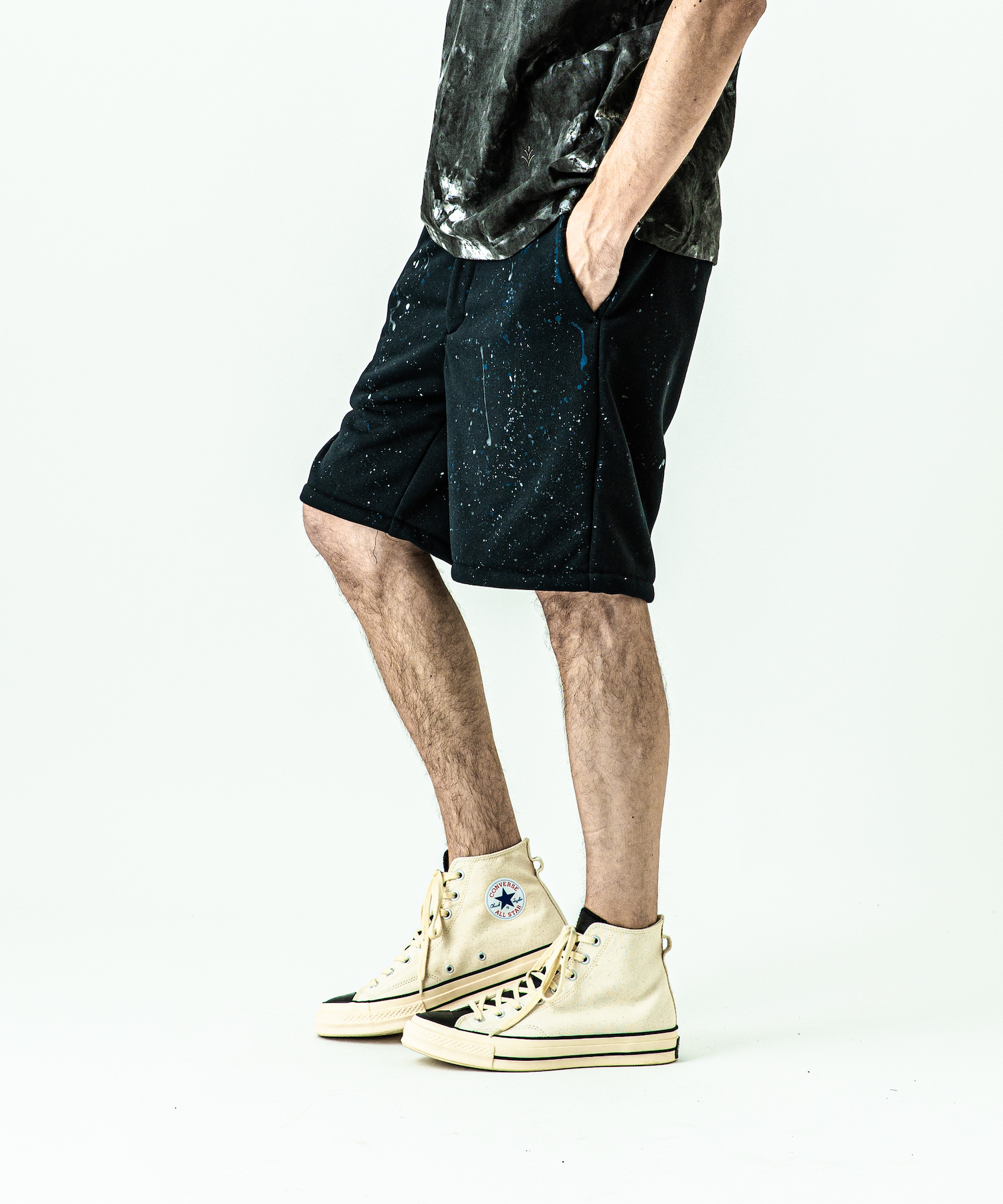 | spec | ミリタリーパンツに着想を得たワイドシルエットにAcanthusならではのシルエットを融合させたショートパンツ。リラックスしたサイズ感ながら丈感で野暮ったさを解消。右脇には用途に富んだベルトループを1本のみ配置。手作業によるスプラッシュペイントを全体に施している為、1点1点表情の異なる特別な1枚となる。 |