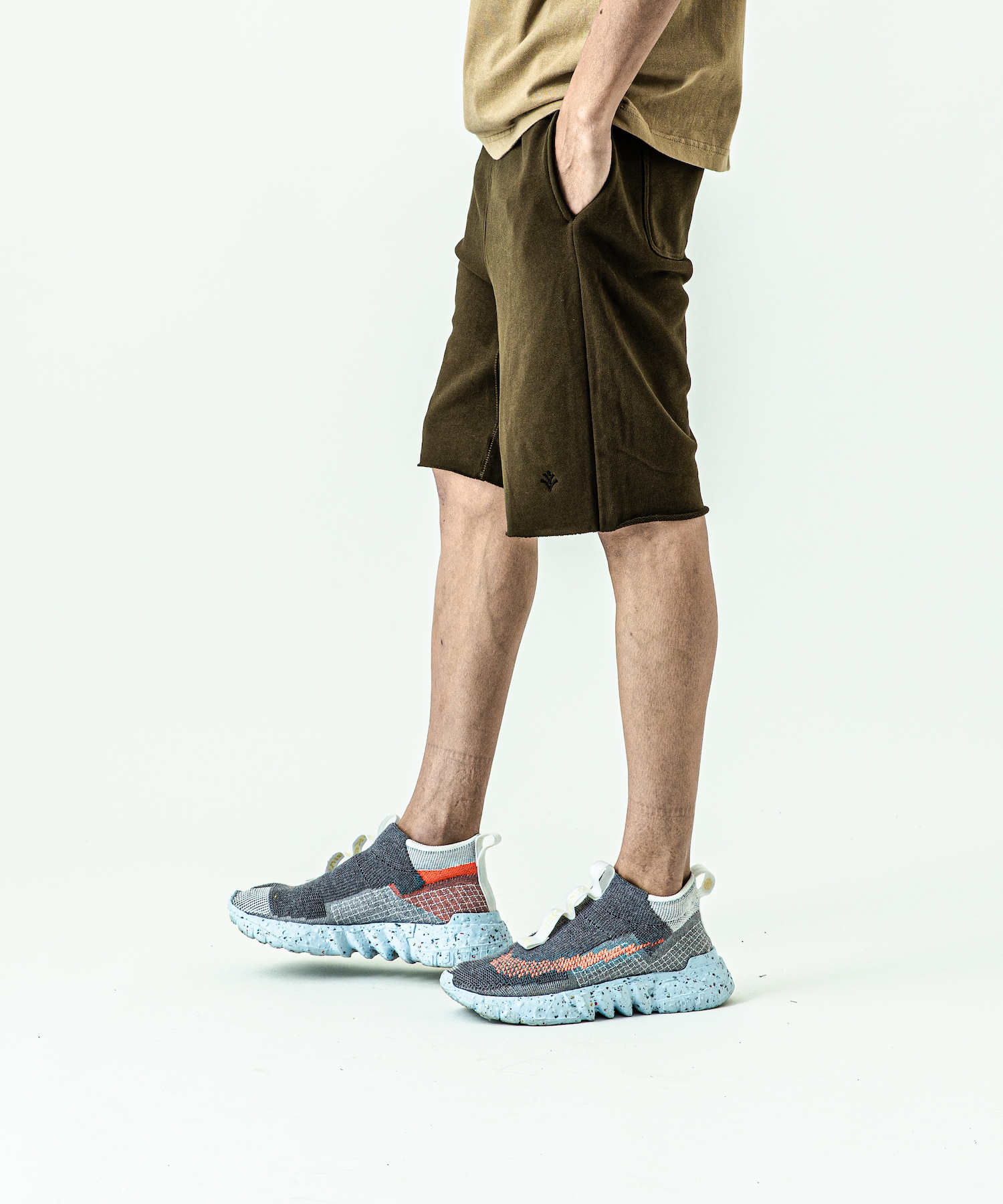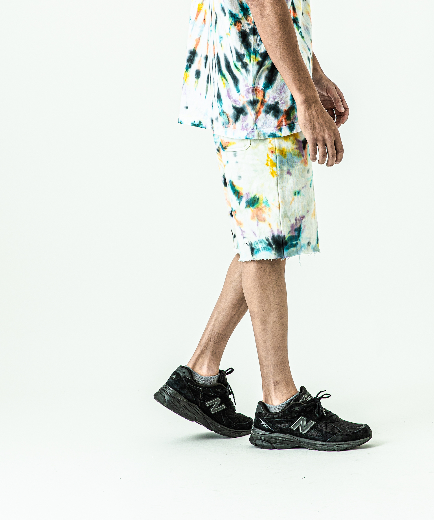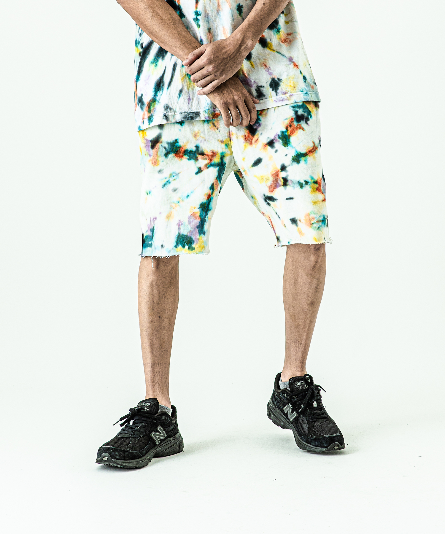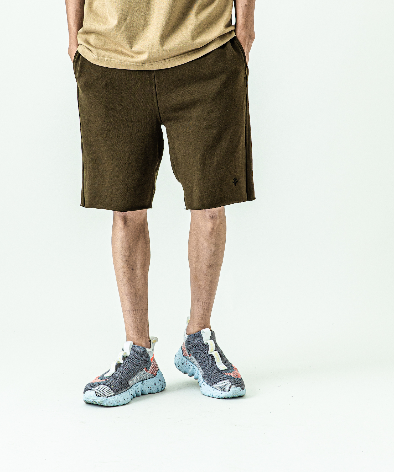 | spec | 裏パイルスウェット生地を使用したスウェットショーツ。裾は切りっぱなし仕様。左裾にはブランド名であるACANTHUS(地中海地方産ハアザミ 属植物)の形をモチーフにしたアイコンを刺繍。D品番(TIE-DYE色)には有松地方の染め職人による、スパイラル絞りの美しいタイダイ染めを施している。 |