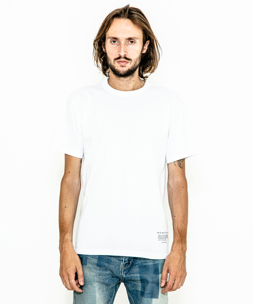 シンプルにド定番。汎用性が高くカジュアルシーンならどこでもハマるシンプルなクルーネックT。タフに使えるバインダーネックがヘタらない秘訣であえて重ねて縫製する仕様でヴィンテージ感を表現。6.2ozの厚みを持ちながら膨らみを持った糸を使っていることからボリュームがありながらドライでザックリした着心地を体現しています。AcanthusオリジナルデザインのパックにTシャツ本体にも同様にブランドロゴをプリント。着こなしやすくお得感も満載のアイテムです。 |