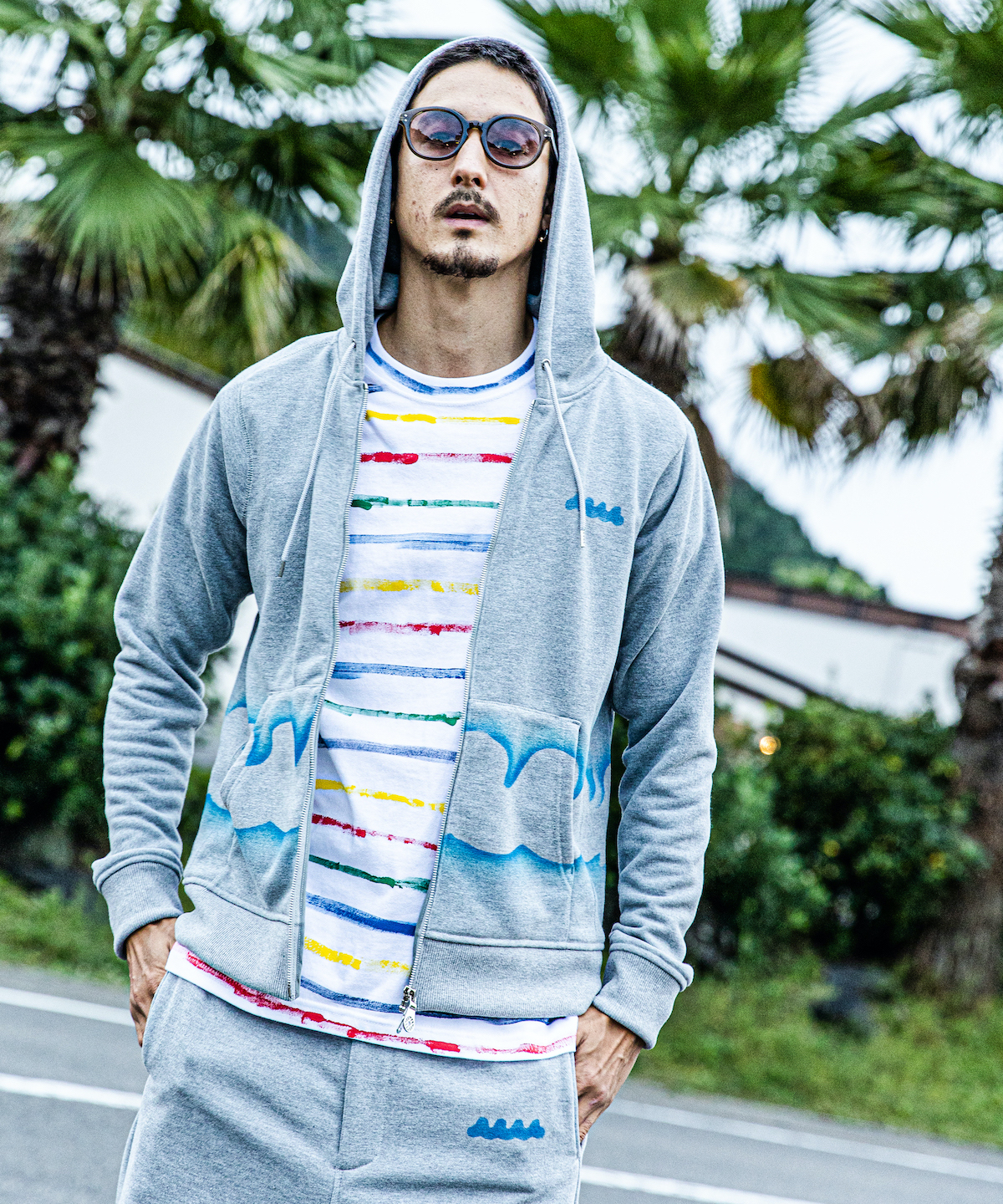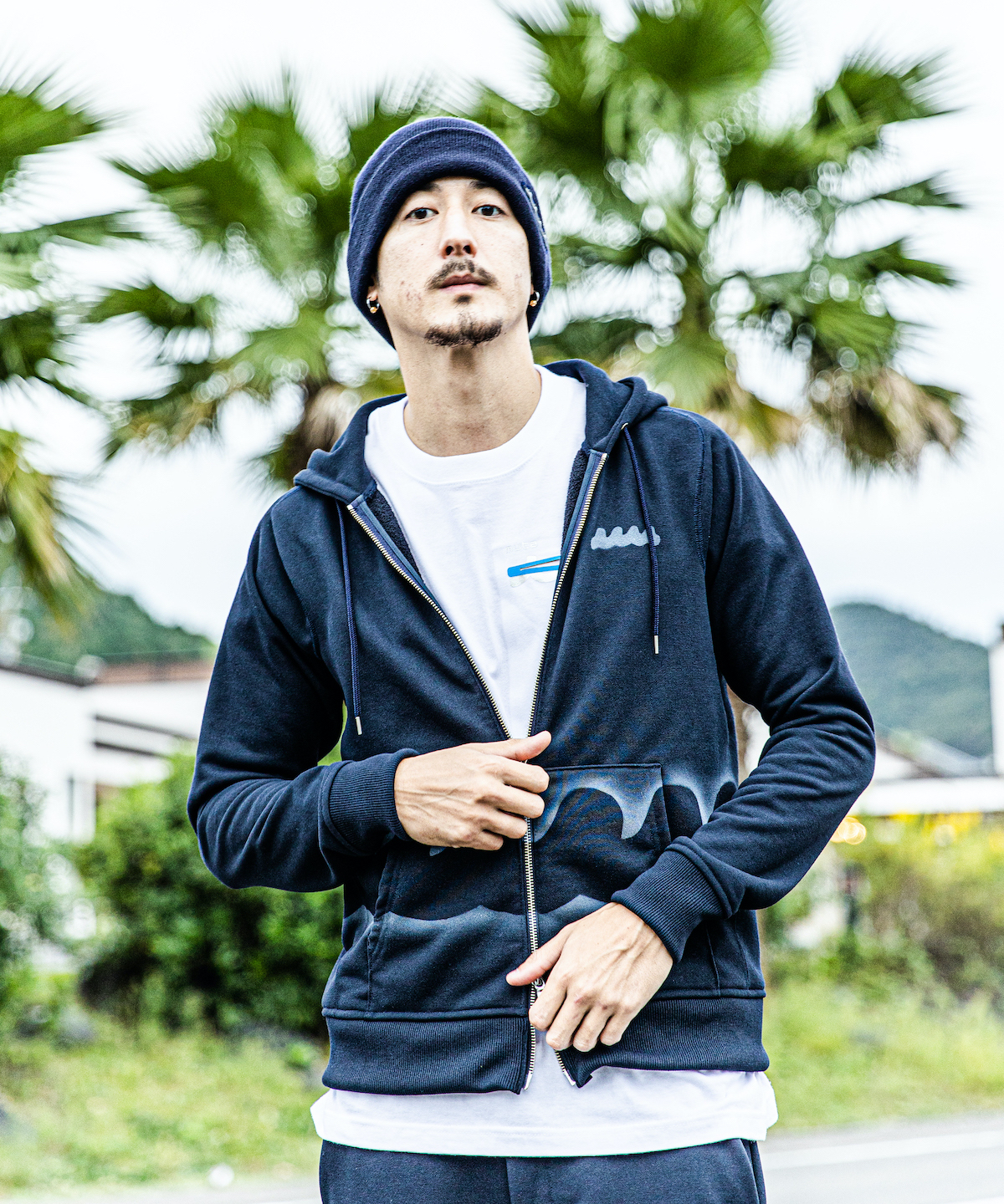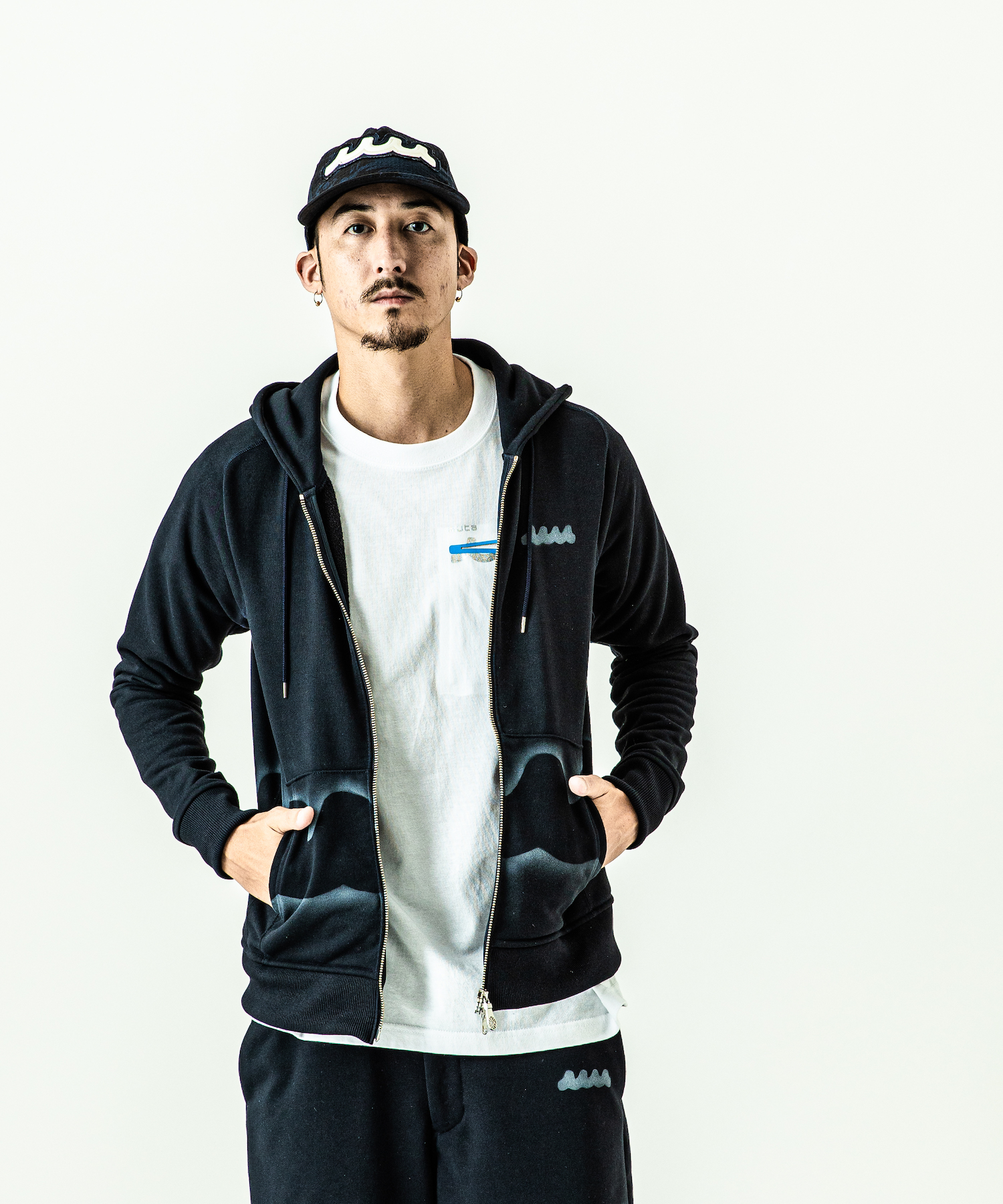 | spec | mutaとのコラボレーションコレクション。 フリーダムスリーブ仕様のフルジップフーディー。最大の特徴はアームスリーブ脇のマチ付き仕様の袖付け。軍隊の運動時に、腕を上げた際に裾が上がり、肌が見えないように開発されたと言われている通称フリーダムスリーブ。脇にマチを配置する事で肩、腕が動き易い仕様となっている。40年代~50年代のスウェットアイテムに見られるディティールだが、縫製コストのかかる仕様で徐々に姿を消していったと言われている。現在も技術の高い縫製者が必要な仕様。フロントZIPにはmutaオリジナル引き手のファスナーを使用。1点1点ステンシルによるmutawaveロゴを左胸、ウエスト周りに大胆にプリント。 |